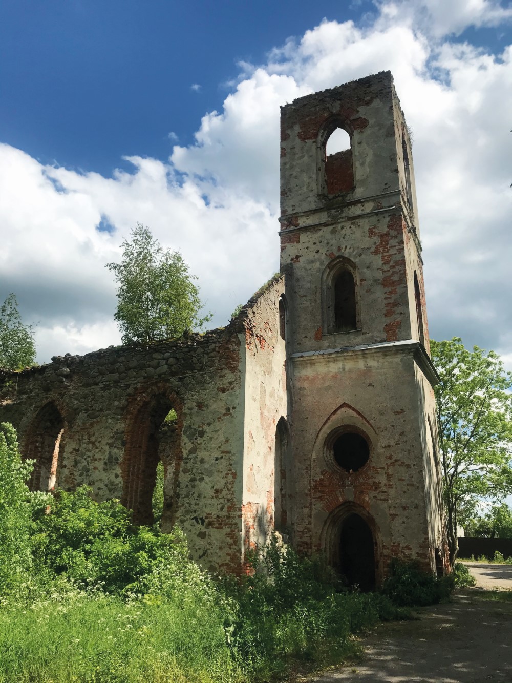 Тишина и умиротворение — вот, пожалуй, два слова, которыми можно охарактеризовать руины кирхи Шаакена. Она была заложена в 1280 году. Строилась по канонам орденской архитектуры: из валунов и кирпича, выложенных готической кладкой. Так как стоит она на этом месте с XIII века, за всю свою историю неоднократно меняла облик и постоянно перестраивалась. Самые сильные изменения коснулись её в XVII-XVIII веках. Когда-то у кирхи была высокая башня со шпилем, а на всю округу звенели три колокола. В 1945 году кирха не пострадала. До 1970-х никак не использовалась: разрушалась и в 1966 году лишилась шпиля. Затем внутри устроили склад, просуществовавший до 80-х. С этого времени кирха заброшена и разрушается. И хоть сейчас её вид далёк от первоначального, прикоснувшись к старинным стенам, понимаешь, сколько всего они повидали на своём веку.