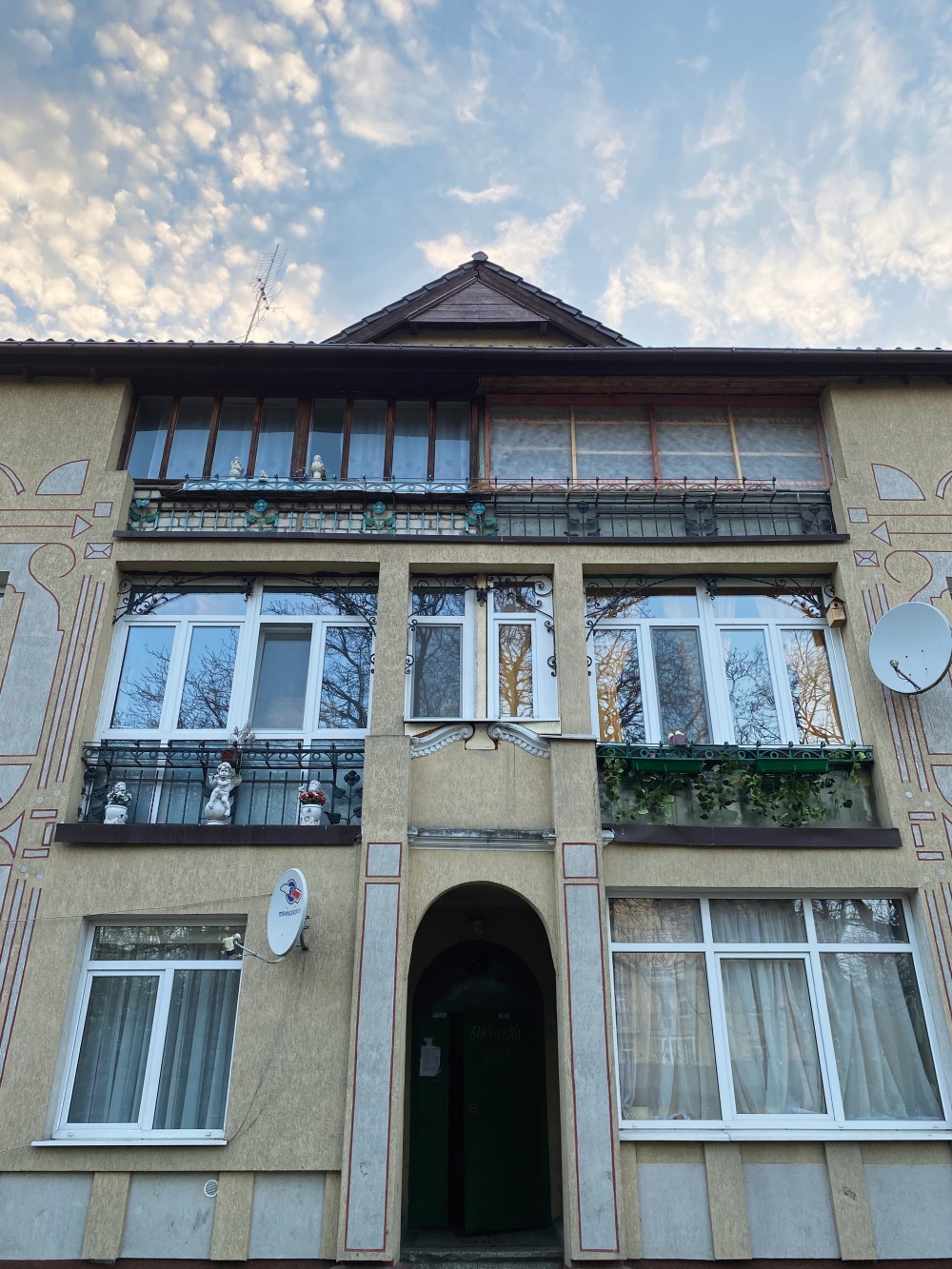 Какое славное название! Имя Доротея означает «дар божий». Здание было построено в 1903 году, основательно — из кирпича. Изящный входной портал, невысокие шипцы, присутствует даже маленький мезонин. После ремонта фасада вилла не лишилась эстетики, однако мир больше не увидит особого рисунка, выполненного в технике сграффито, — процарапывание рисунка через несколько слоев штукатурки, вид декорирования, зародившийся ещё в античности.