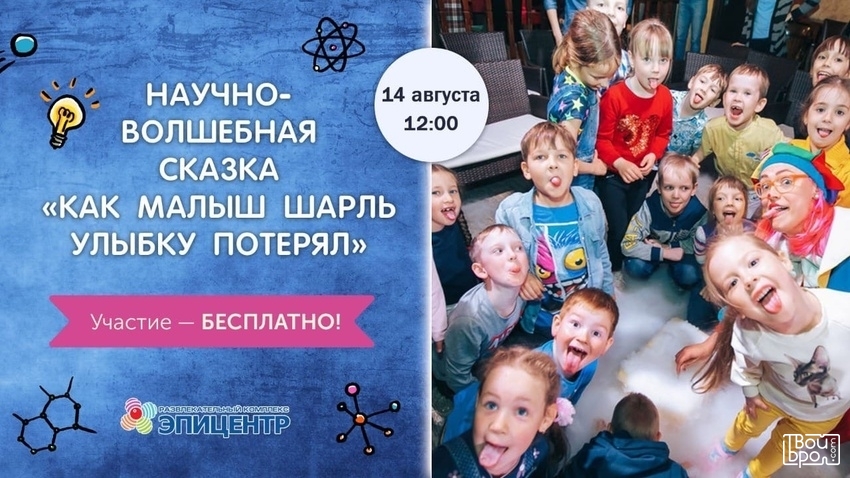 14 августа в 12:00 в РК «Эпицентр» пройдёт научно-волшебная сказка со счастливым концом «Как малыш Шарль улыбку потерял»