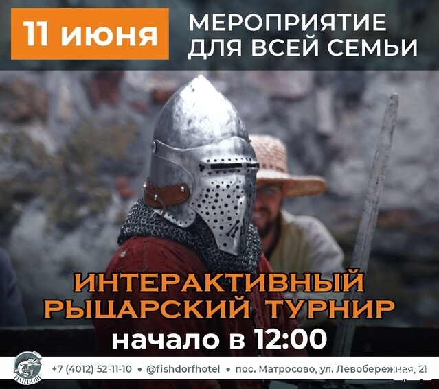 Загородный комплекс FishDorf приглашает вас на бесплатный рыцарский турнир — мероприятие для всей семьи, который состоится 11 июня. 0+