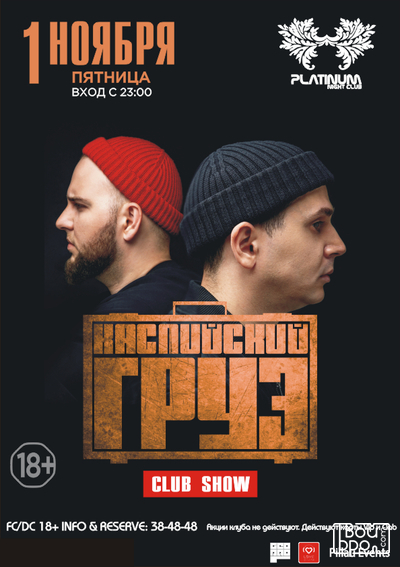1 ноября 2019 года на сцене ночного клуба Platinumпройдёт концерт группы КАСПИЙСКИЙ ГРУЗ 18+