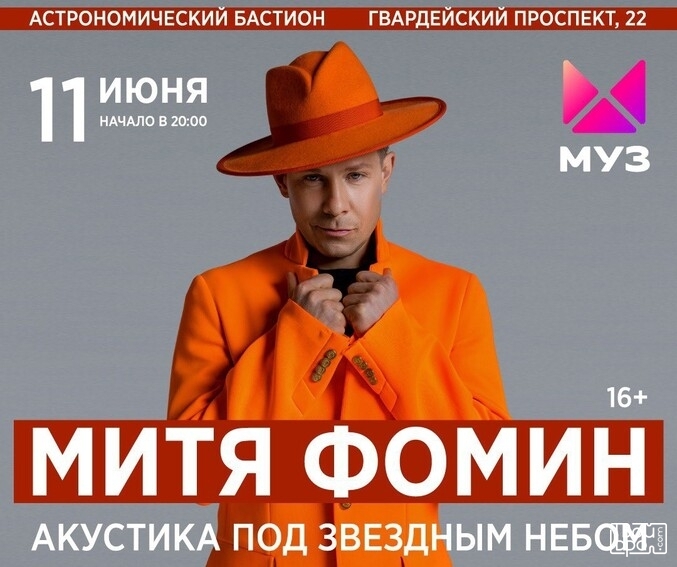 11 июня российский певец Митя Фомин и музыкальный бэнд Freeugolnik сыграют живой акустический концерт в центре города, в «Астрономическом бастионе». 16+