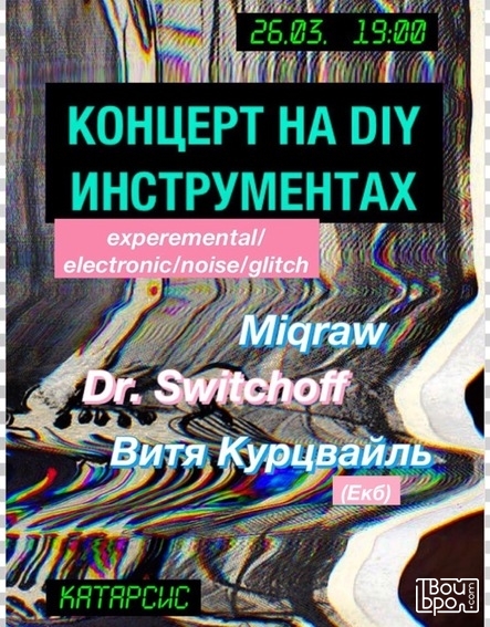 Miqraw - новый проект многоликого Андрея Гладкова, профессионального звукоинженера и музыканта,известного многим по участию в группе Los Chikatilos. В своих сольных проектах Mindmutation, Tufraniuh, Noise of Toys Андрей последовательно экспериментирует с различными технологиями звукоизвлечения. На нашем концерте он будет использовать модулярный синтезатор собственного изготовления.
