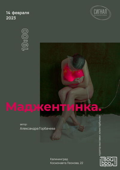 Сквозь работы растекается «маджентовый вкус», с одной стороны яркий, наполняющий энергией, новыми ощущениями, цвет, обещающий страсть, возможно, бурную любовь. Чувство многополярное, как множество оттенков использованных в работах. Согласитесь, что он может означать тревожность и насторожённость, страх потери стабильности. А может обещать важное в жизни яркое путешествие, взаимное и долго пылающее. Цвет – это конструктор, работы можно накладывать на сиюминутное настроение и раскладывать по-своему.»