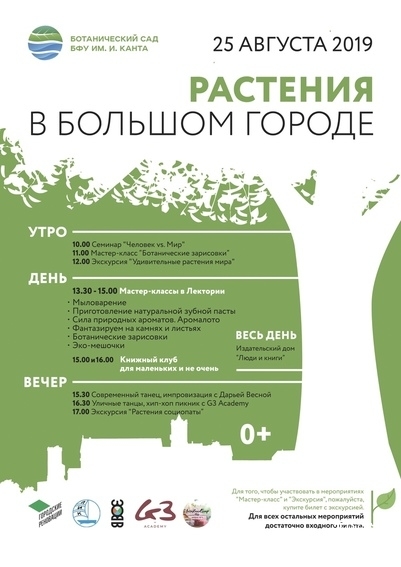 25 августа у нас в Ботаническом Саду пройдет тематический праздник «Растения в большом городе». 0+