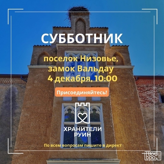 В эту субботу, 4 декабря, «Хранители руин» едут проведать замок Вальдау в посёлке Низовье и помочь арендаторам памятника, семье Сорокиных, в развитии нового центра притяжения!