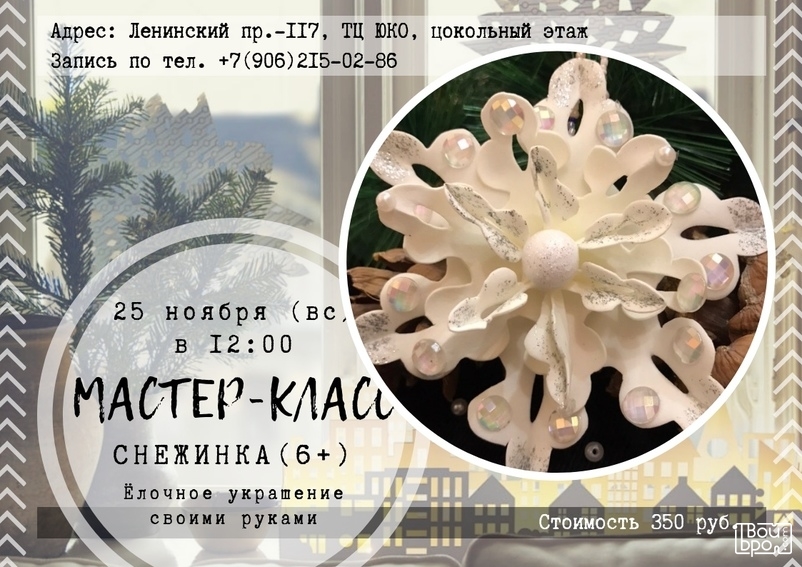 Друзья, совсем не за горами новогодние хлопоты и Детская мастерская Foamiran For You приглашает вас 25 ноября (вс) в 12:00 в «Своё Место» сотворить своими руками новогоднее ёлочное украшение - искристую снежинку из фоамирана!
