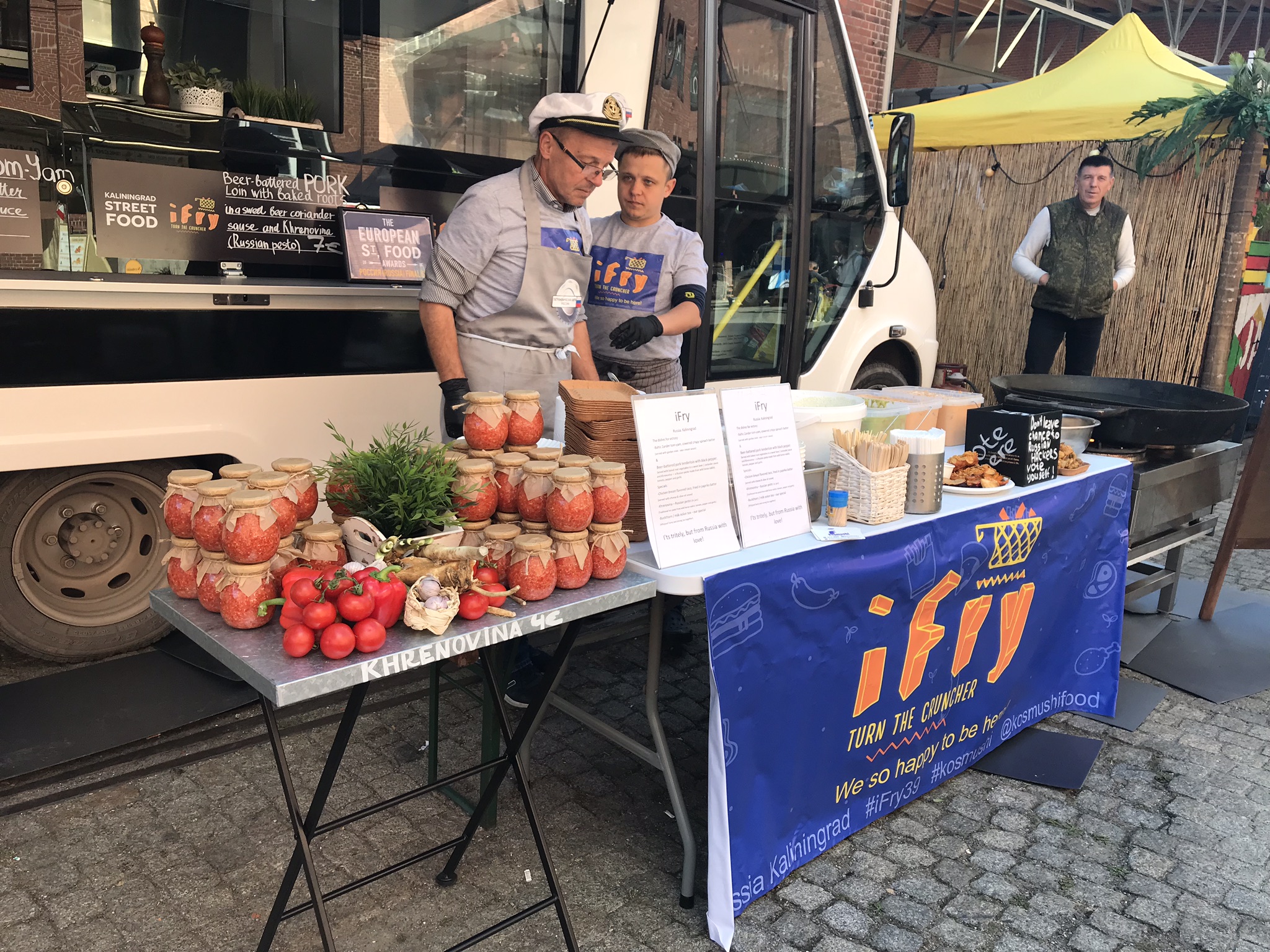 Когда iFry узнал, что едет в Берлин, Антон связался с британским организатором Ричардом, обсуждал, можно ли добавить ещё какое-нибудь блюдо. И решил готовить свинину в кляре. К этой свинине Александр Исаев порекомендовал русский соус, и ребята сделали хреновину.