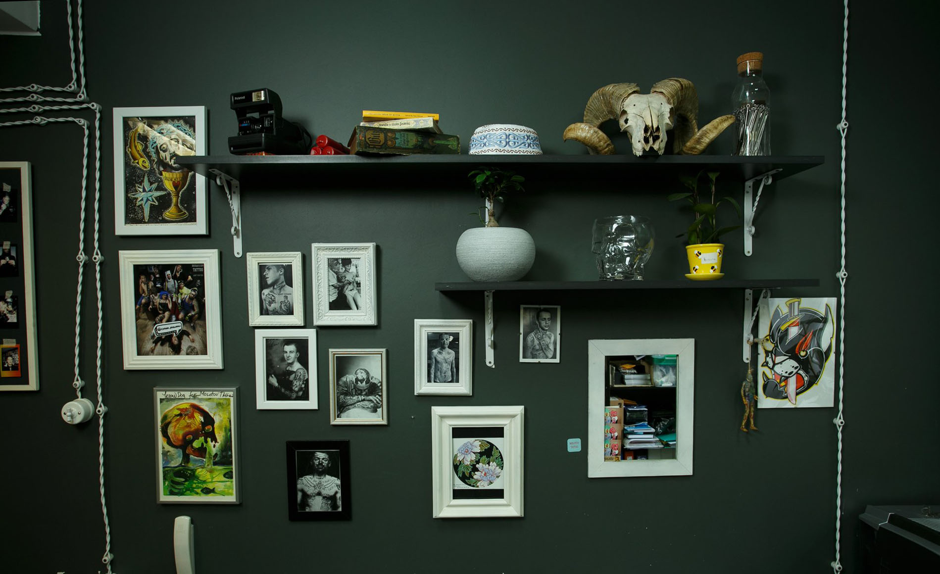 Студия художественной татуировки Molotov Tattoo на сегодняшний день, как и 7 лет назад, занимает лидирующее место в топе среди остальных студий по созданию татуировок в Калининграде. Они прославились не только за счёт наличия в своей «семье» первоклассных мастеров художественной татуировки, но и множеством призов, выигранных как на отечественных, так и на зарубежных тату-конвенциях. Та часть команды, которая нас встретила, раскрыла все карты и тайны, рассказав удивительные истории многочисленных предметов, украшающих их офис.