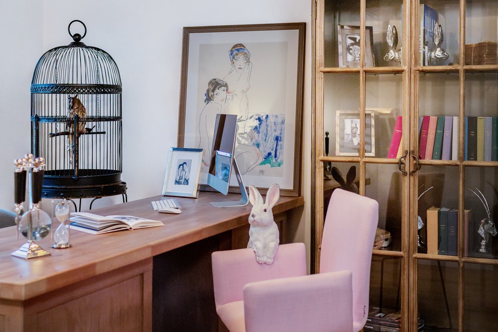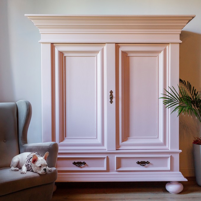 – В этот шкаф я влюбилась даже до того, как увидела его, и изначально судьба его была предрешена стать розовым. Потом он нашёл меня, и теперь стоит довольный, храня наши секреты в переговорной. Хлоя – это ещё один бандит, который обитает в нашем офисе, с удовольствием ездит со мной на работу, всем всегда ужасно рада, – рассказывает Анна.