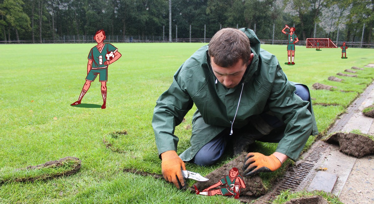 Подрядчики рассказывали, что покрытие здесь имеет свои особенности: газон привезён из Польши, выращен из нескольких видов семян, что увеличивает его плотность, и требует ежедневного сдувания пылинок с помощью спецтехники. Защита травяного покрытия предусматривает: противогрибковую обработку, подкормку, аэрацию – при последней с помощью специальных игл прокалываются отверстия, чтобы испарялась лишняя влага и поступал кислород. Стрижка травы предусматривает определённую длину ворса – 2,5 до 3,5 см.