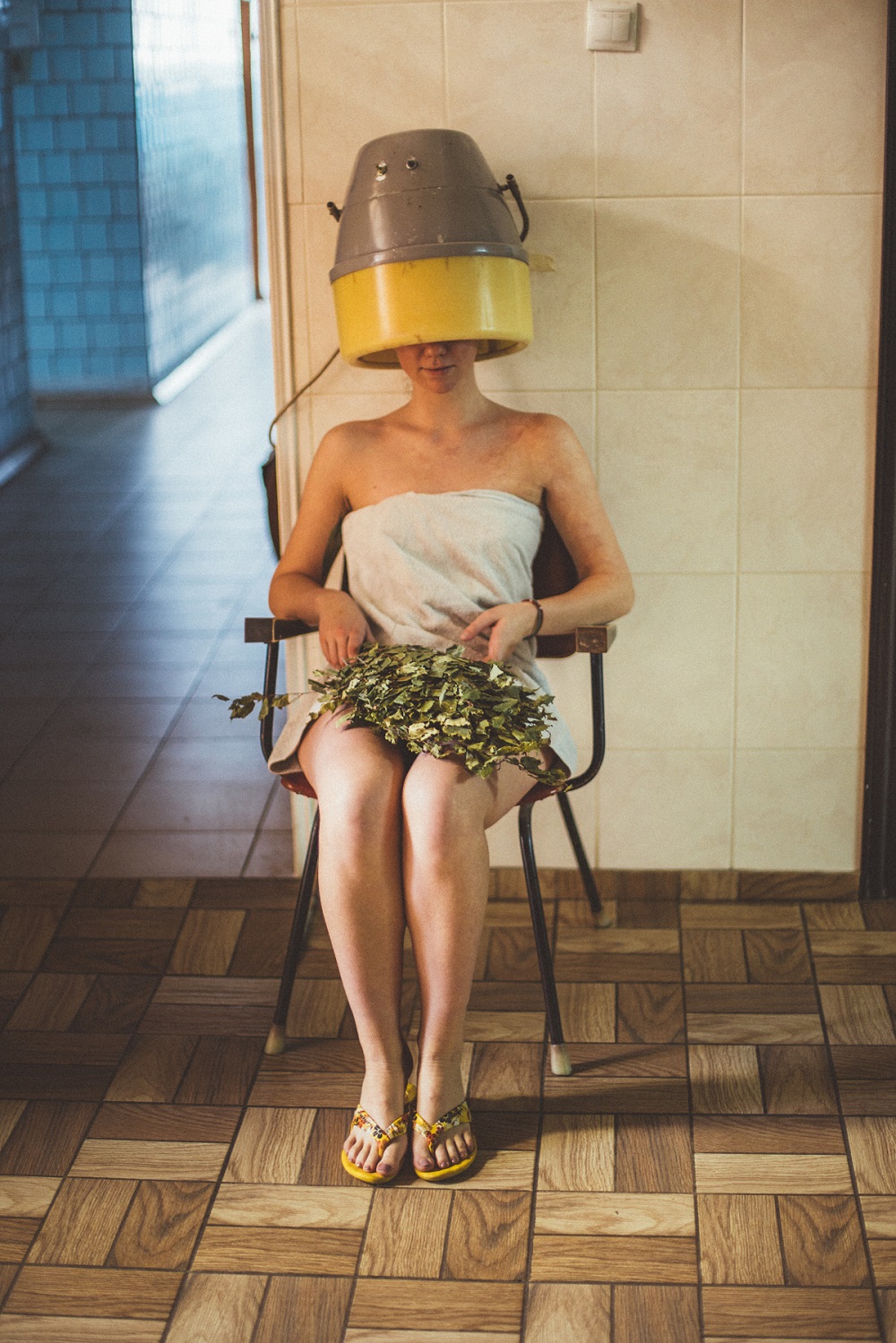 Девушки предпочитают оставаться в отдельном помещении, чтобы избежать лишних взглядов, выйдя в общий зал в одном полотенце или халатике. Всё необходимое приобретается или приносится с собой из дома, и компании собираются уже на втором этаже.