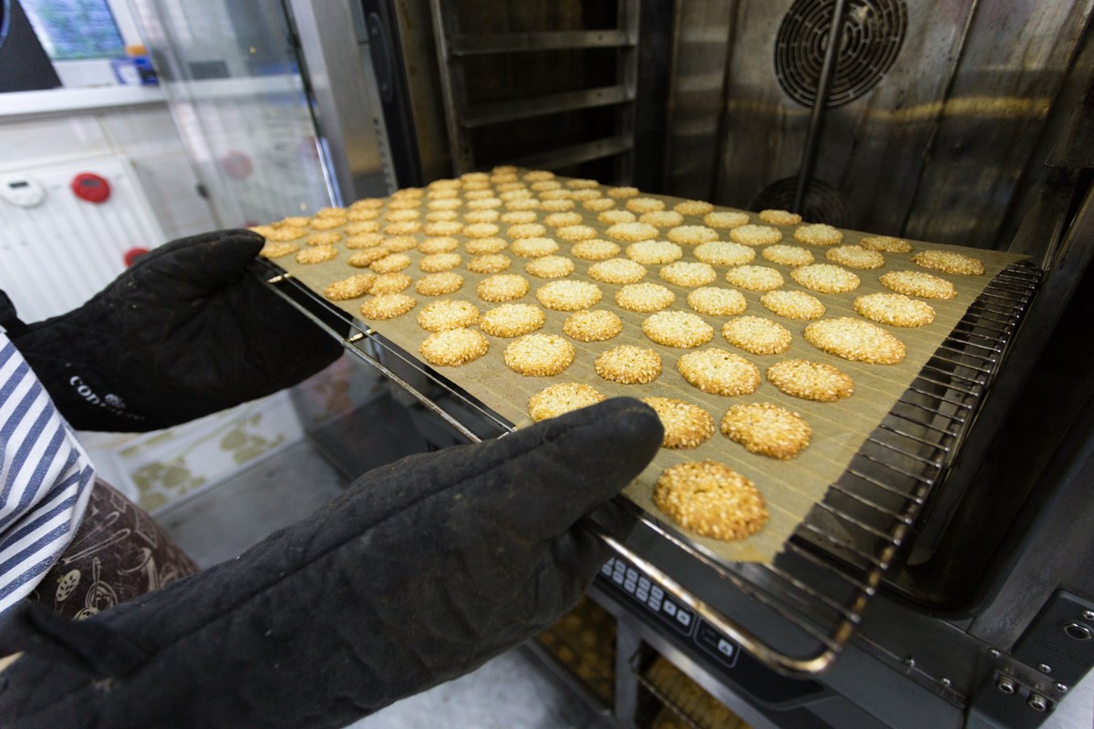 Рабочий день начинается в 8 утра, когда приходит повар, потом подключается начальник производства, а там уже и все остальные подтягиваются: начальник, кондитеры, кухонные рабочие, заготовщики, курьер, оператор. Одно из направлений нашей деятельности — доставка ланчей собственного приготовления, мы отдаём до полудня обеды и заказы по выпечке. После обеда печётся хлеб до вечера, потом он всю ночь остывает, и так изо дня в день.