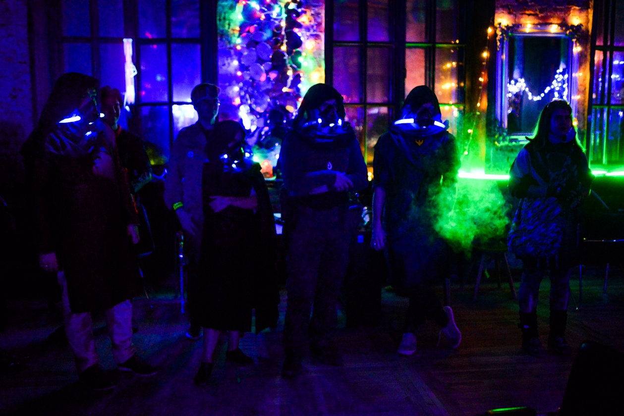 В этот вечер в двух залах Дома Культуры проходит павильонная игра с элементами космовестерна, киберпанка, нуара и трэша. Попасть на нее можно, только будучи в этом достаточно закрытом сообществе. Есть костяк «ролевиков», которые договариваются о стиле, времени и месте проведения, а потом сообщают об этом участникам прошлых игр. Если вы ни разу не играли, вас могут попросить пройти «авторизацию» — бывалые должны поручиться за вас. Описание и правила игры, в которой участвую я, выкладываются за несколько месяцев до начала.