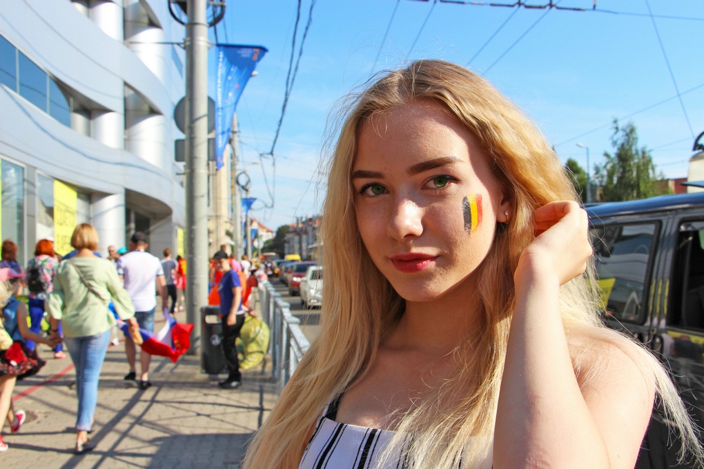 «Сегодня играет моя любимая команда – бельгийская сборная, за неё, я, собственно говоря, и болею. В Калининград я приехала ради игры и пока всем довольна. Город поистине красивый, как его и описывали во многих туристических путеводителях. Признаюсь, что мы не ожидали такого радушия, поэтому доброжелательность от калининградцев, волонтёров и иностранных болельщиков меня приятно удивила. Мы только-только приехали, на море пока что не побывали. Посмотрела Инстаграм, надеюсь, что завтра такого ажиотажа, как показано в новостной ленте, на пляже не будет».