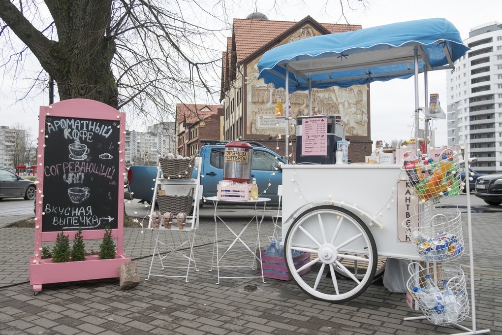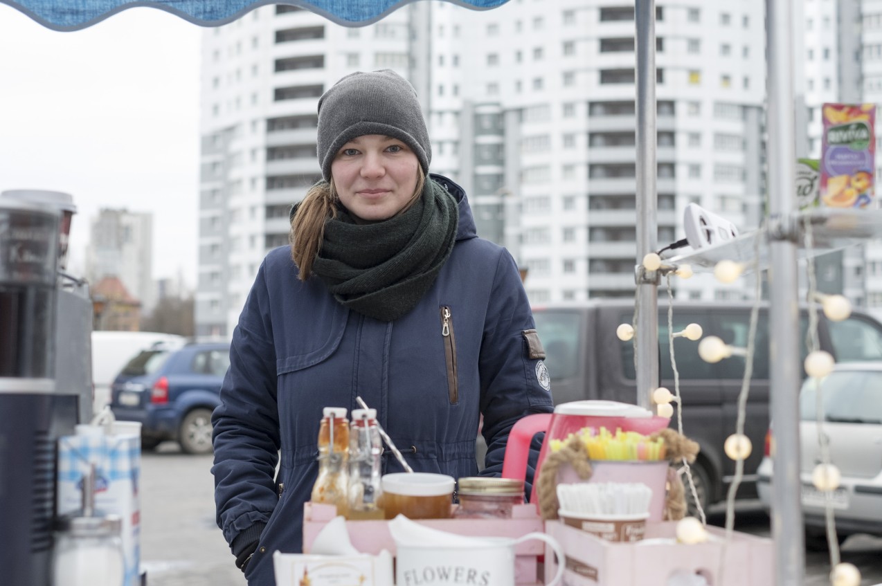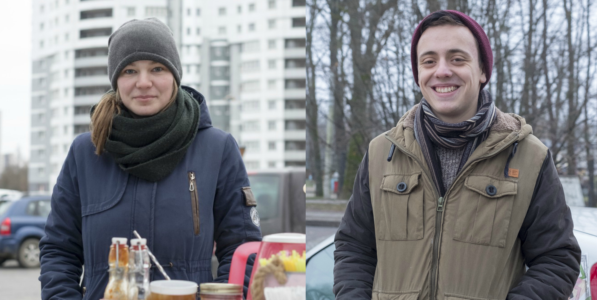 Еще месяц назад город был усеян передвижными кофейными точками. Но стоило только термометру опуститься до +3º, как они все исчезли. Мы прошерстили весь город и нашли тех, кто не побоялся выйти на улицу в этот «лютый мороз». Итак, знакомьтесь, Илона и Данила.