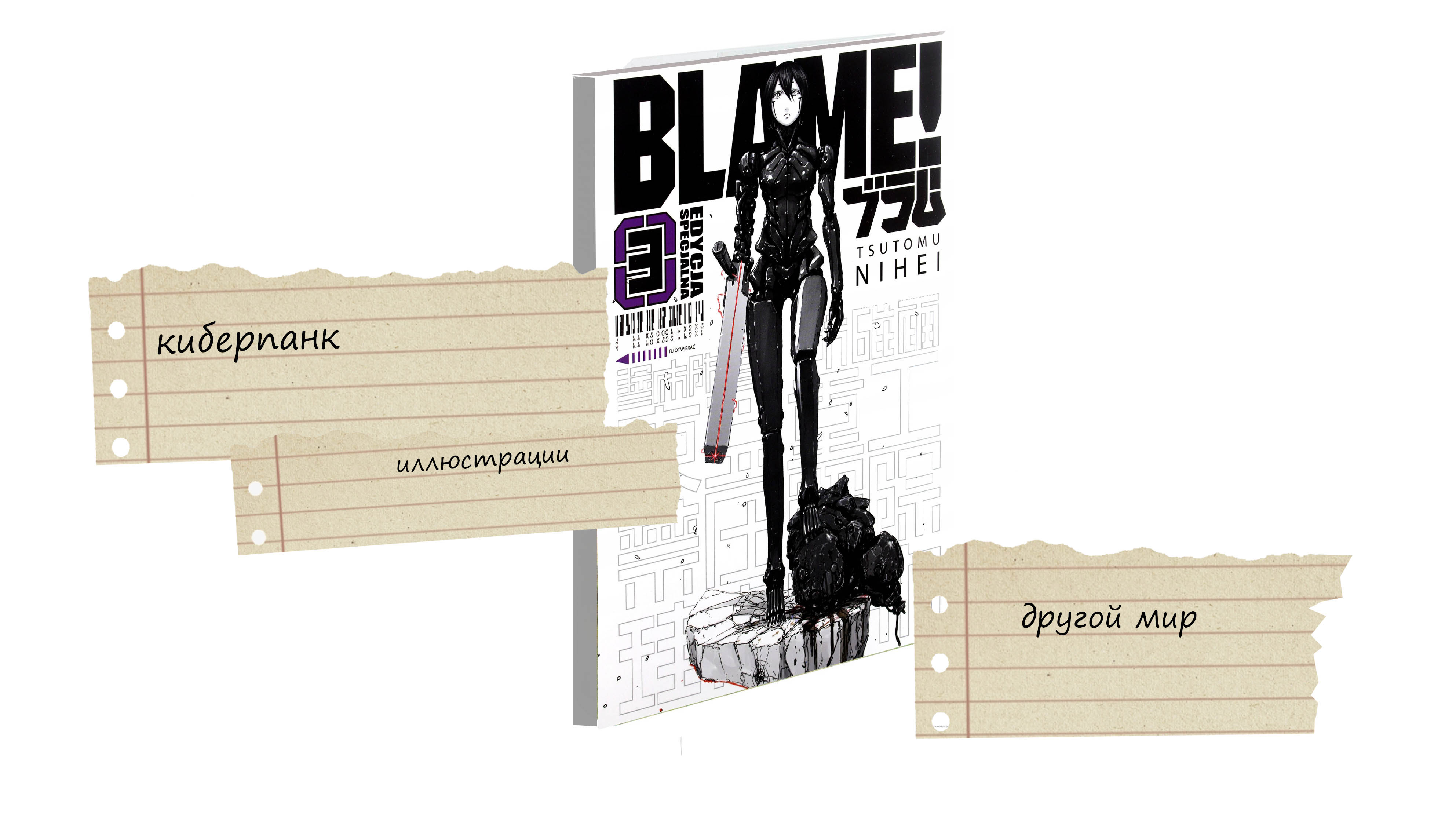 Манга — это японские комиксы, некоторые из которых возведены в ранг искусства. «Blame!» — легендарный киберпанк, практически без сюжета и диалогов, офигенно нарисованный, отчасти бессмысленный, берущий за душу, черно-белый, навевающий безысходность, выбивающий почву из-под ног, впивающийся в мозг.