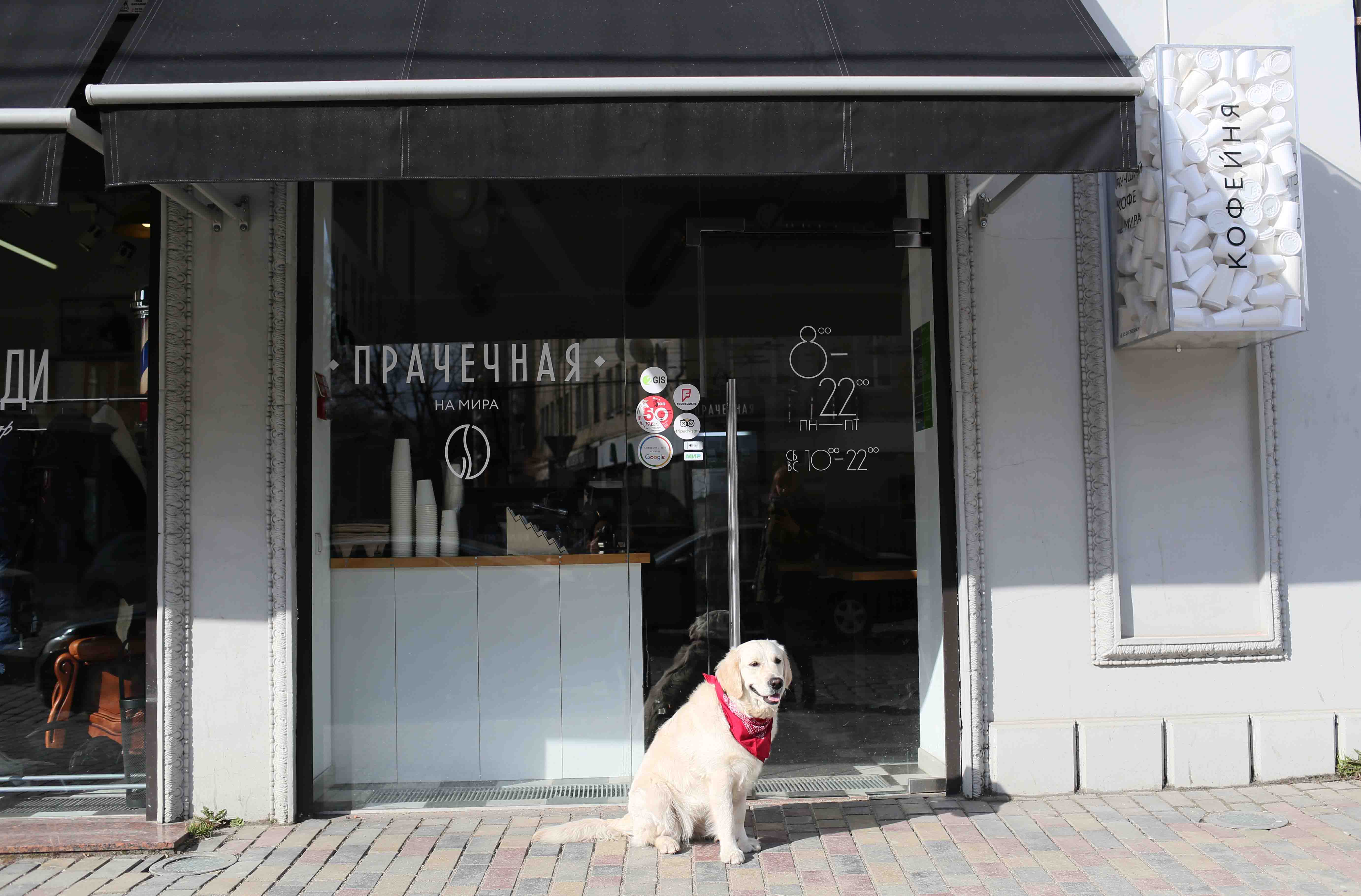 С порога бариста предлагает миску. Персонал всячески принимает участие в том, как разместить Альбу.