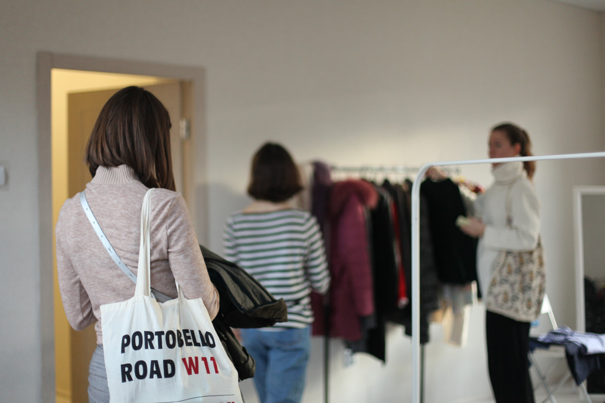 Около часа мы не могли оторваться от представленных вещей. Двигаясь от аксессуаров к кофтам, а от них — к платьям и обуви. И, конечно, смогли урвать что-то для своих гардеробов. Потом все-таки сделали над собой усилие, оторвались от одежды и отправились на кухню — общаться с организаторами.