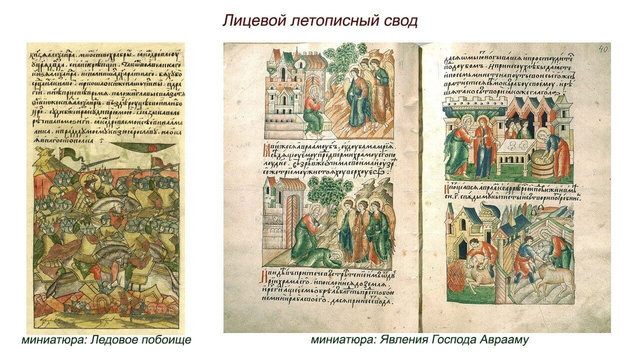 Многие причисляют к «предкам» комикса «Царь-Книгу» — лицевой летописный свод Ивана Грозного. Эта книга была создана в 1568 году по заказу царя (предположительно для обучения детей) в единственном экземпляре. Слово «лицевой» в названии Свода означает иллюстрированный, с изображением «в лицах».