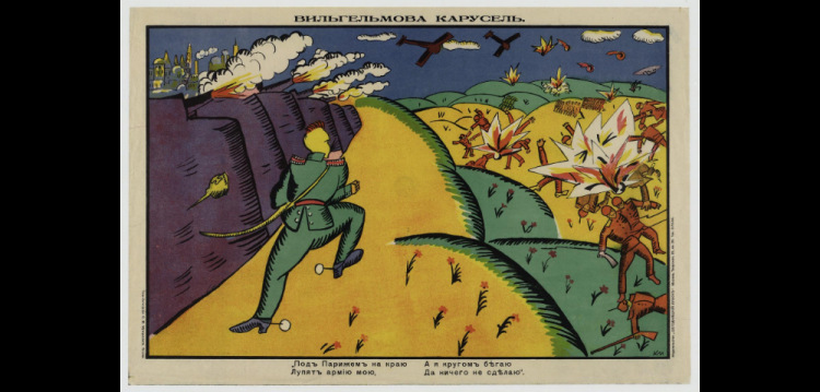 В 1914-ом году авангардисты Владимир Маяковский, Казимир Малевич, Аристарх Лентулов и Давид Бурлюк создают объединение «Сегодняшний лубок» с целью возродить традиции лубка. Эта группа выпустила серию из 22 листов на тему Первой мировой войны. Под рисунками расположены рифмованные строки, сочинённые Маяковским.