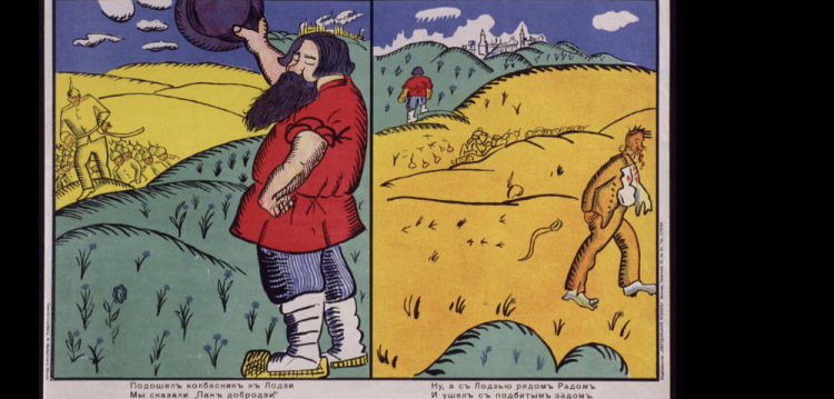 Русский крестьянин и потерпевшая от него поражение немецкая армия (Казимир Малевич в сотрудничестве с Владимиром Маяковским)