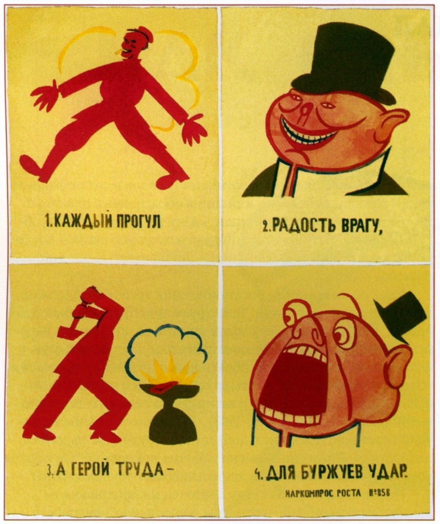 После революции 1917-го года стиль комикса стал активно использоваться в пропаганде. Например, всем известные «Окна РОСТА» — серия агитационных плакатов. Над плакатами работали: поэт Владимир Маяковский, художники Д. Моор, Иван Малютин и многие другие. Использовались последовательные изображения с надписями (часто в стихотворной форме), а также запоминающиеся образы. Окна РОСТА стали продолжением традиции лубка в нашей стране и важным шагом в формировании отечественного комикса.