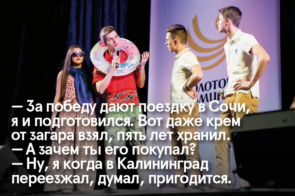 Этот год для Калининградского КВН стал по-настоящему знаковым. В Светлогорске проходил знаменитый фестиваль «Голосящий КиВиН», а местные лиги отмечали солидные даты. Так, в БФУ имени Канта 10 лет отметила лига КВН «Факультет», а городская лига «Золотой осьминог» в минувшую пятницу разменяла третий десяток. «Твой Бро» посетил финальную игру 20 сезона, чтобы узнать, кто поедет в следующем году на «КиВиН» в Сочи и какие шутки не стыдно рассказать друзьям