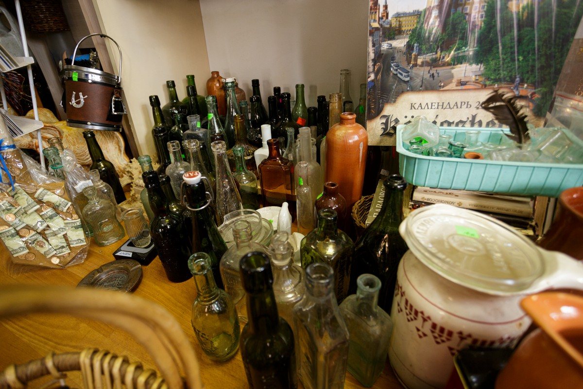 В лавке много различной посуды, массивных пивных кружек с крышкой, бокалов. Те, что вы видите на фото ниже, принесла Римме Викторовне женщина, оказавшаяся в числе первых переселенцев. Новой жительнице бывшего Кёнигсберга, приехавшей восстанавливать послевоенный город, они достались от прежней хозяйки квартиры.