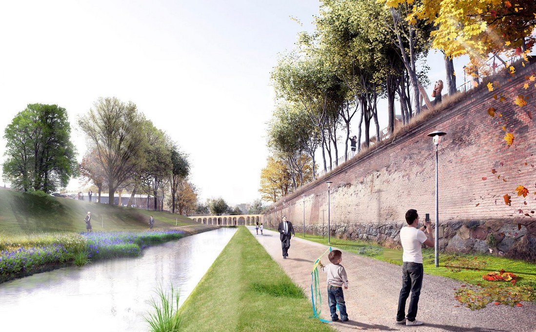 В этом году, как своего рода итог многолетней рефлексии и активистских попыток решить проблему Литовского вала, возник проект «Парковое кольцо», который инициирует восстановление целостности всего зелёного пояса Шнайдера и превращение его в прогулочный маршрут. В это же время КБ «Стрелка» представило свой проект благоустройства Литовского вала на общественных слушаниях (его визуализацию мы используем в качестве иллюстраций к этому материалу). КБ «Стрелка» выступало куратором проекта и помогало всем участникам процесса наладить диалог и выпустить качественный проект. Заказчиком проекта был ДОМ.РФ, который вместе с правительством области, администрацией Калининграда и Минстроем России работает в рамках приоритетного проекта «Формирование комфортной городской среды», по направлению которого и идёт финансирование. После серии публичных обсуждений проекты были переданы в администрацию города.