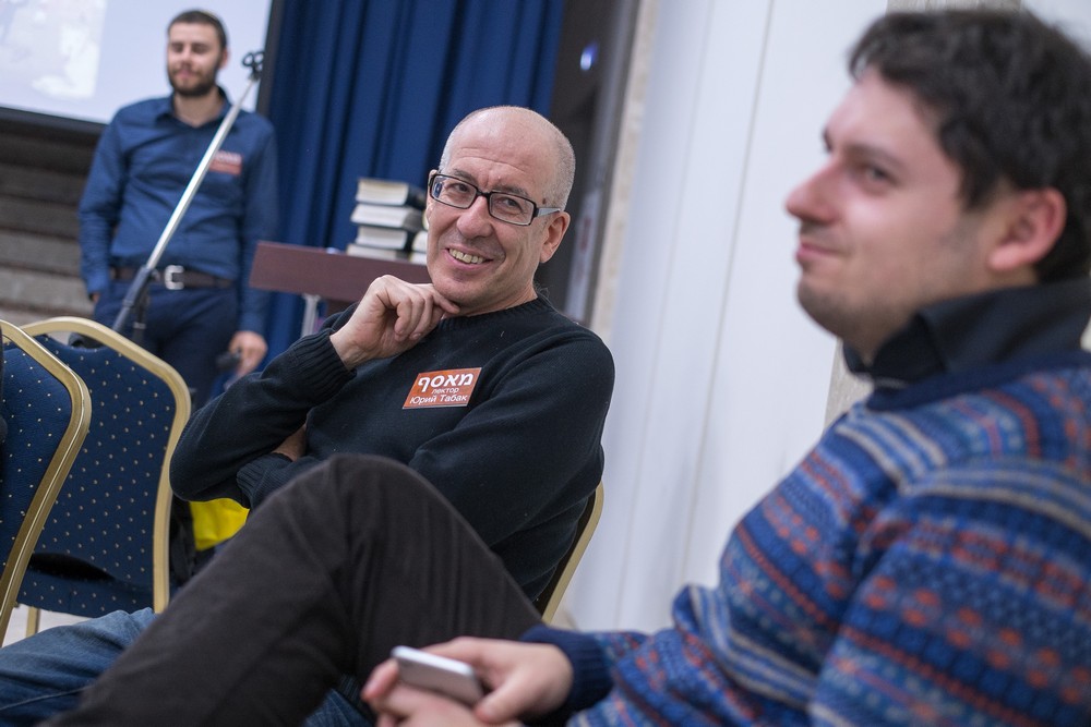 На второй день участников становится на порядок больше. Кто-то не смог приехать в день открытия фестиваля из-за работы, а кто-то накануне отмечал шаббат. «Мы вчера, как положено, обошли всех друзей, и уже поздно стало», - улыбаясь, говорит дама в очках. На лекциях у многих теперь можно заметить блокноты, а у одной женщины в руках даже вязальные спицы и нежно-розовую пряжу.