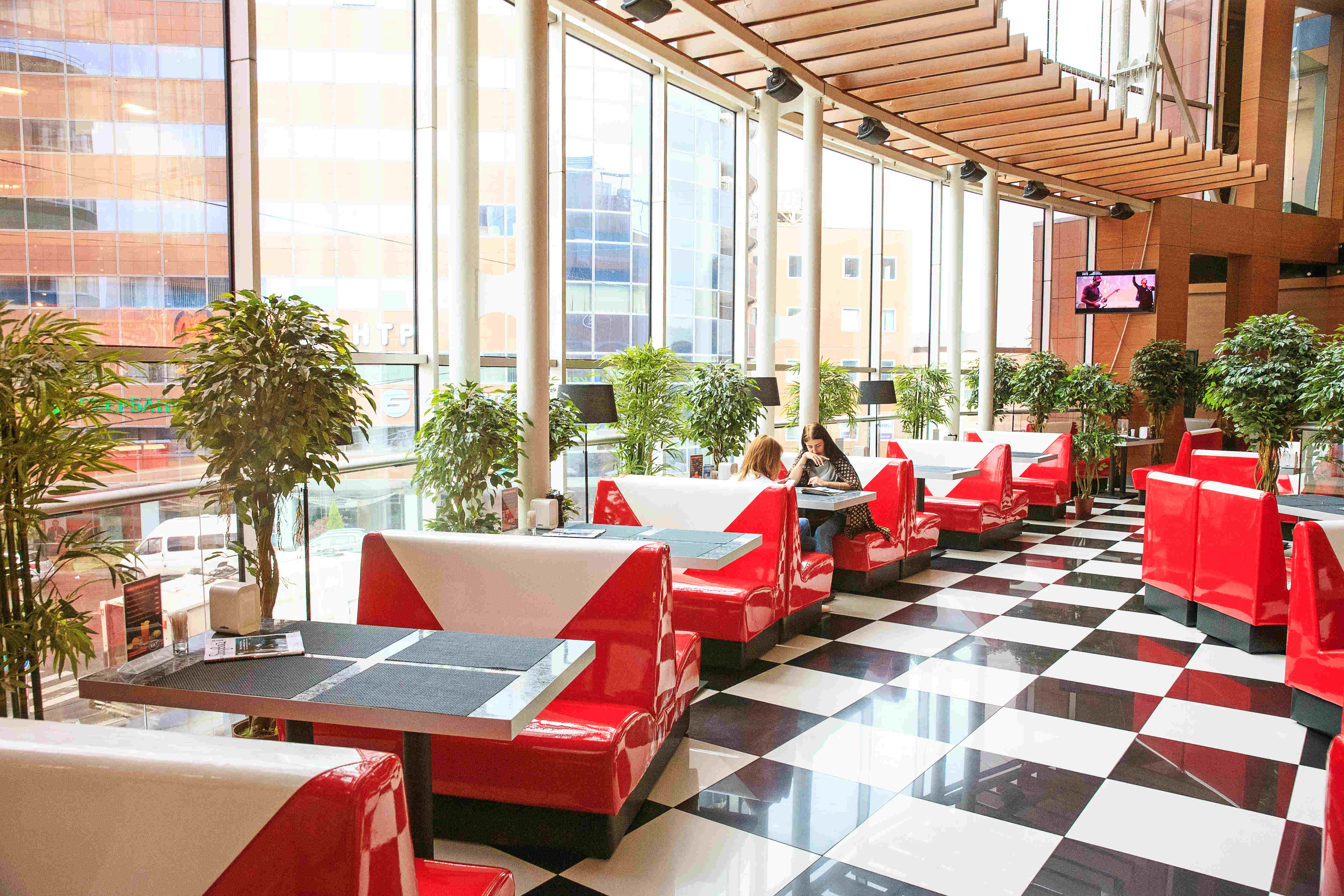 Eat the burger joint работает в торговом центре «Мега-Маркет» уже второй год. Во время пиар-кампании рестораторы утверждали, что привлекали именитого московского шефа Александра Прошенкова для создания меню и технологий приготовления блюд. Бургерная находится на втором этаже торгового центра «Мега», и это позволяет ей не ограничиваться стенами и потолками –вокруг много пространства и солнечного света. В зале симпатичные столики с металлическими столешницами, яркие красно-белые диваны в стиле американских закусочных. Отчасти заведение напоминает американский дайнер. Классика американской культуры, где предлагают бургеры с сочными котлетами, хрустящую яичницу и хороший кофе. За столиком чувствуешь себя довольно уютно, много зеленых растений в горшках, ненавязчивая музыка, приветливый персонал. Здесь вам предложат 7 видов бургеров и картофель фри, а также все хиты калининградских ресторанов — от строганины до пасты болоньезе и стейка из семги. Также мы обнаружили ланч-меню из сезонных продуктов и завтраки.