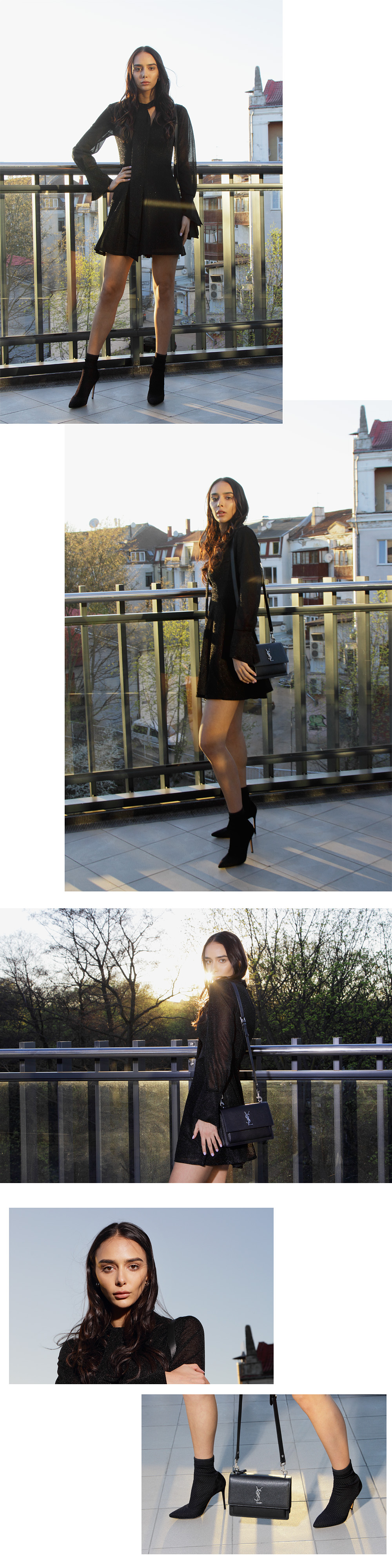 Образ на вечер. Платье русского бренда Atelier Lencom подчёркивает фигуру, у него невероятно красивая ткань. Ботильоны Gianvitto Rossi купила в 1st в Калининграде. Сумка Saint Laurent — подарок любимого на день рождения. Мечтала о ней два года, считаю ее идеальной: классика подо всё. Серёжки Vasusha’s Vintage.