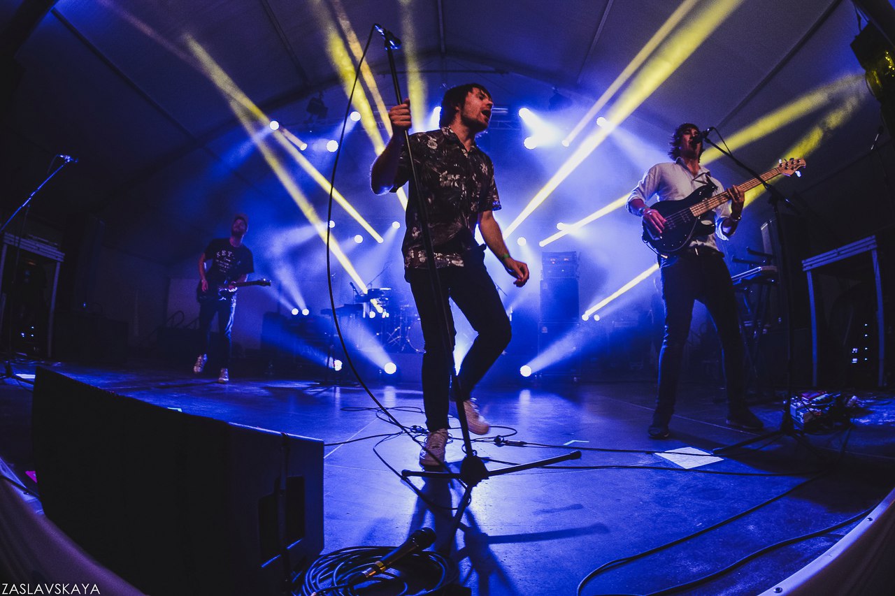 «Это плохие группы репетируют постоянно, мы же репетируем раз в шесть лет, - заявляет со сцены Глеб Ильюша. - Такой вот у нас легкий жанр». Своим первым за шесть лет выступлением «ГитарыStereo» открывают второй, «гитарный» день «Янтарного пляжа». Их жанр действительно легкий: обросшая множеством мифов и легенд популярная калининградская формация выдает мечтательный брит-рок под выглянувшее из-за туч солнце. Тент во время сета самой хорошо одетой местной группы всех времен заливается рыжим и розовым, и все это очень идет ностальгическому материалу, который поставляют со сцены «ГитарыStereo». Несколько сотен слушателей щурятся от удовольствия, когда снова слышат «Диджея Лузера» и «Небо 501».