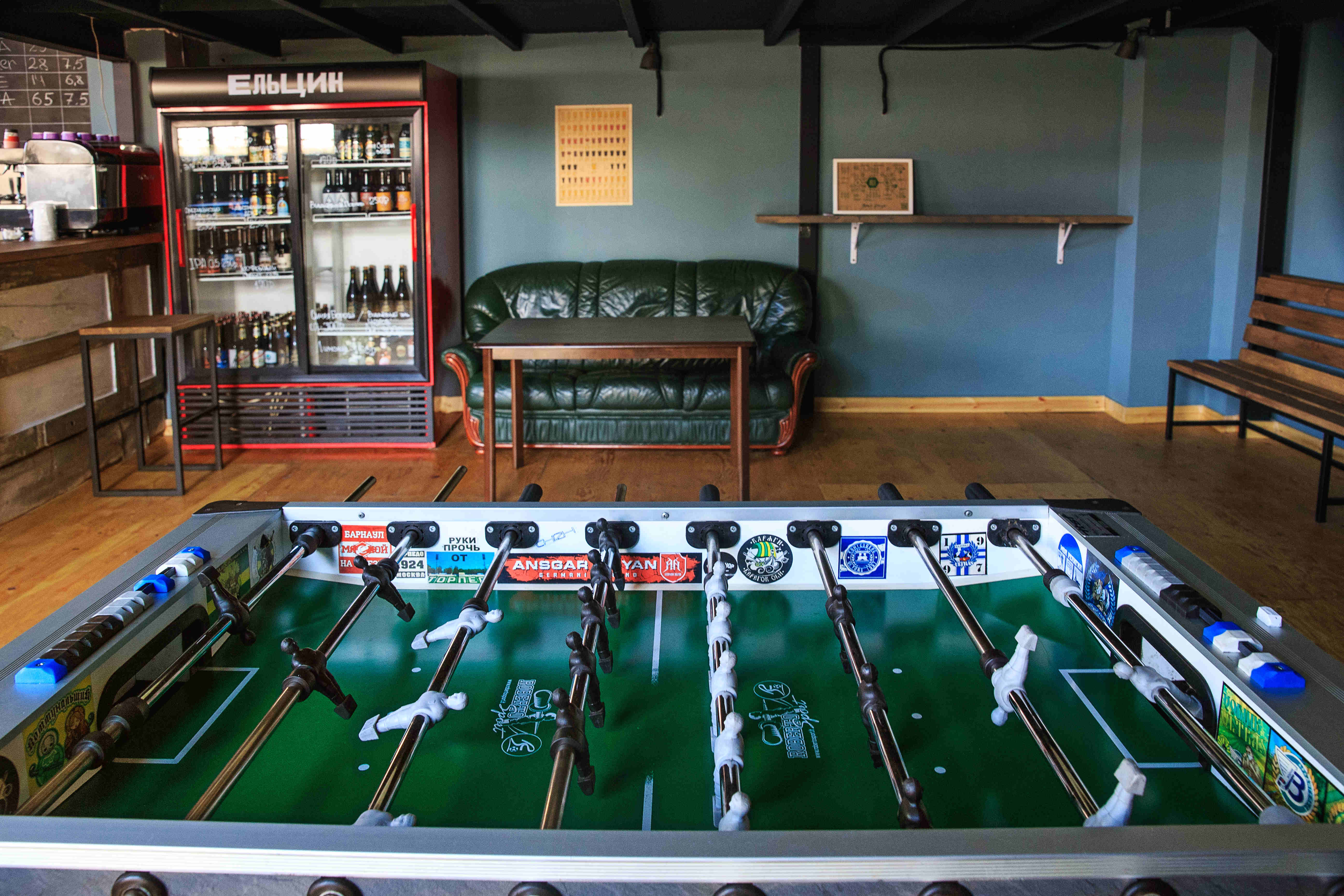 Бар крафтого пива с громким именем открылся в начале июля на улице Гаражной в здании завода «Судреммашавтоматика». «Ельцин» может похвастаться просторным залом, лаконичным лофтовым дизайном и деталями, кокетливо намекающими на буржуазные традиции распития напитка в пабах — чего только стоит пышный кожаный диван темно-зеленого цвета и огромная голова оленя, прибитая прямо над кранами с пивом. Приятно удивляют нежные женские детали — букет цветов и фрукты в вазе в качестве комплимента, вода «сколько хочешь», а для веселых и озорных — брутальный настольный футбол.
