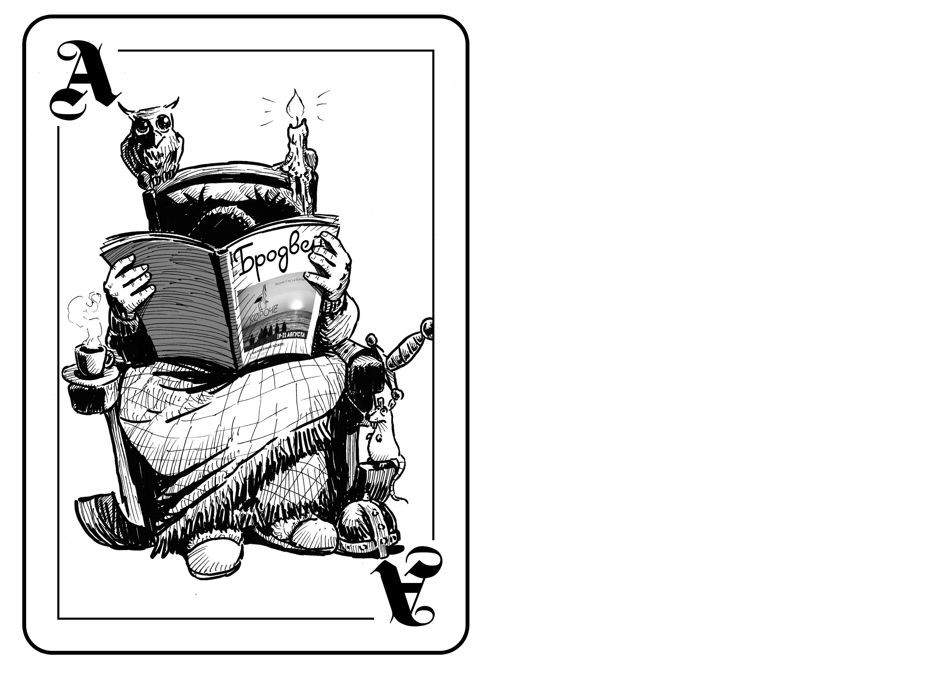 Сам по себе термин «Бродвей» - комбинация в покере, являющаяся самым старшим возможным стритом, состоящим из старших карт разной масти: 10, J, Q, K, A. В юбилейном номере мы решили сделать свой «Бродвей», который состоит из 10 карт, но одной - нашей, бродвейской масти. Каждая карта соответствует какой-то части нашего журнала. А все вместе они - та выигрышная комбинация, которая позволяет нам все эти 10 лет быть с вами.