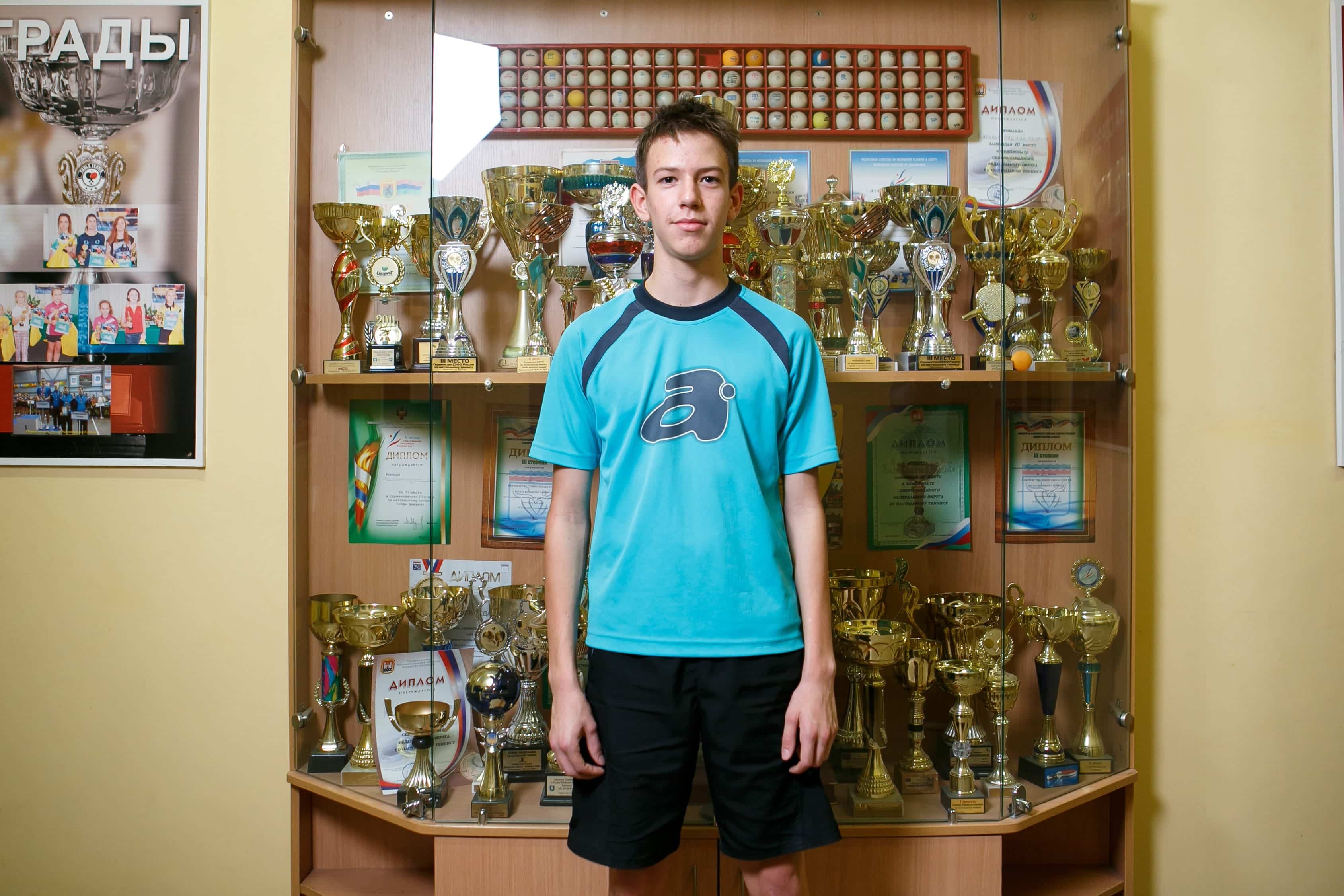 Я играю за Комплексную спортивную школу олимпийского резерва «Юность Москвы», сам оттуда же, из столицы. Настольным теннисом занимаюсь уже пять полных лет, кандидат в мастера спорта. Специальных ритуалов перед играми у меня нет, я просто, бывает, вспоминаю какие-то свои прошлые победы и надеваю одну из своих счастливых футболок, в которых побеждал. На турнире уже в третий раз, все нравится.