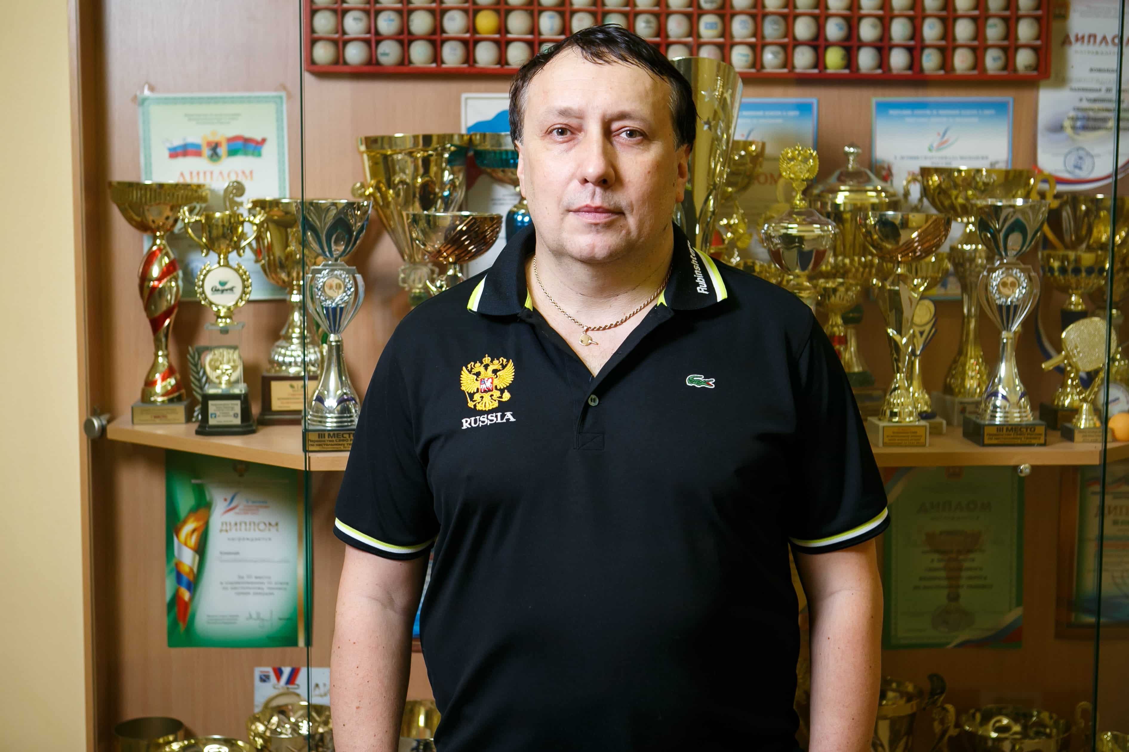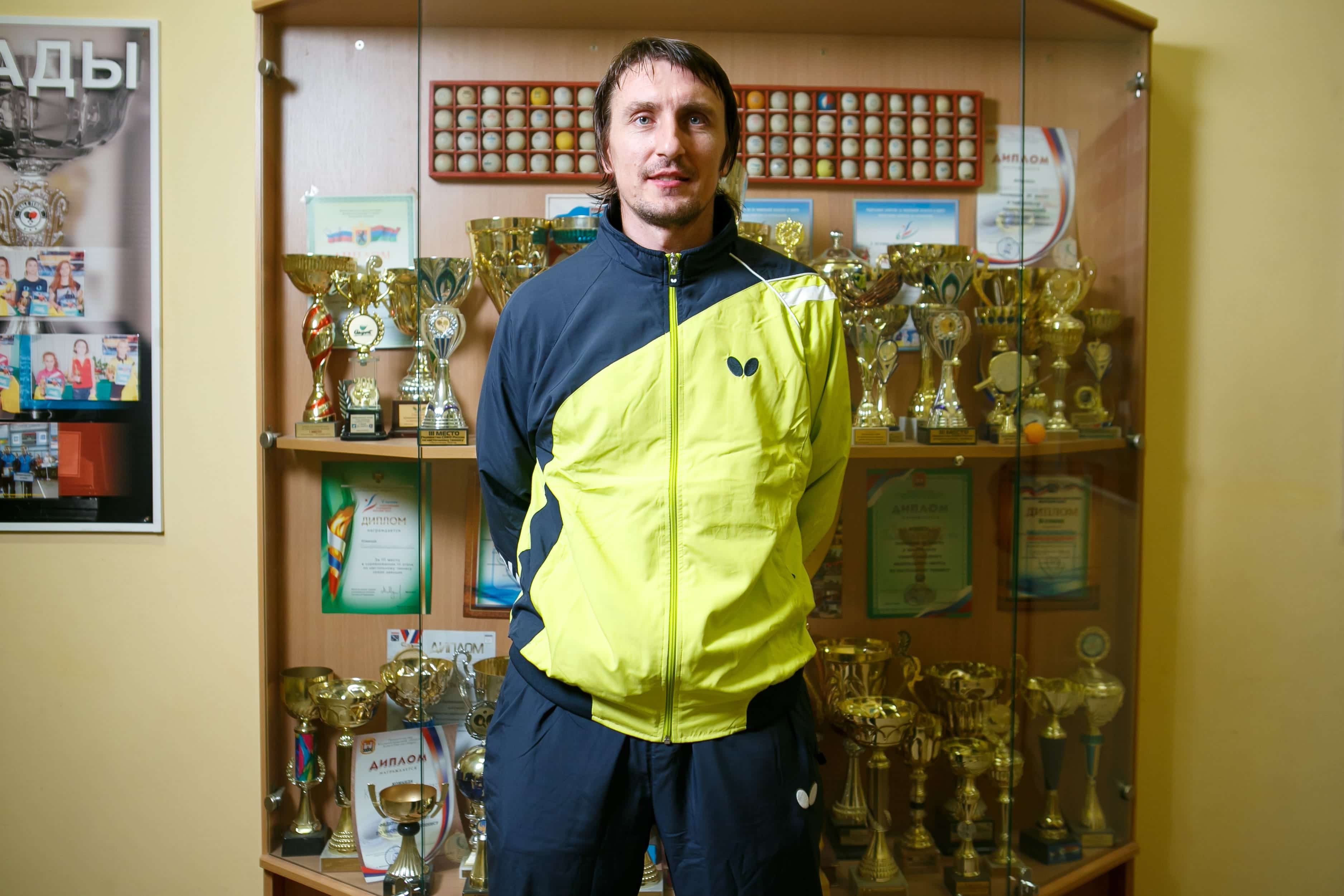 Сорок лет занимаюсь настольным теннисом, практически без перерывов. Был чемпионом СССР среди юношей, чемпионом России был, чемпионом СССР среди студентов, был абсолютным чемпионом всемирных игр среди ветеранов. Более десяти медалей на чемпионатах среди ветеранов заработал. Перед матчами никаких ритуалов не провожу, а кулон в виде ракетки для настольного тенниса ношу постоянно, не снимая. Кстати, я его даже освятил его в Храме Гроба Господня. Я являюсь вице-президентом федерации и организатором этого турнира, мы уже пятый год организовываем этот турнир. Впечатления положительные, потому что это результат нашей и моей личной работы. Уже наработан определенный опыт, и всех, кто к нам на турнир приезжает, потом отсюда не выгнать, все возвращаются на следующий год. Это хороший показатель нашей работы.