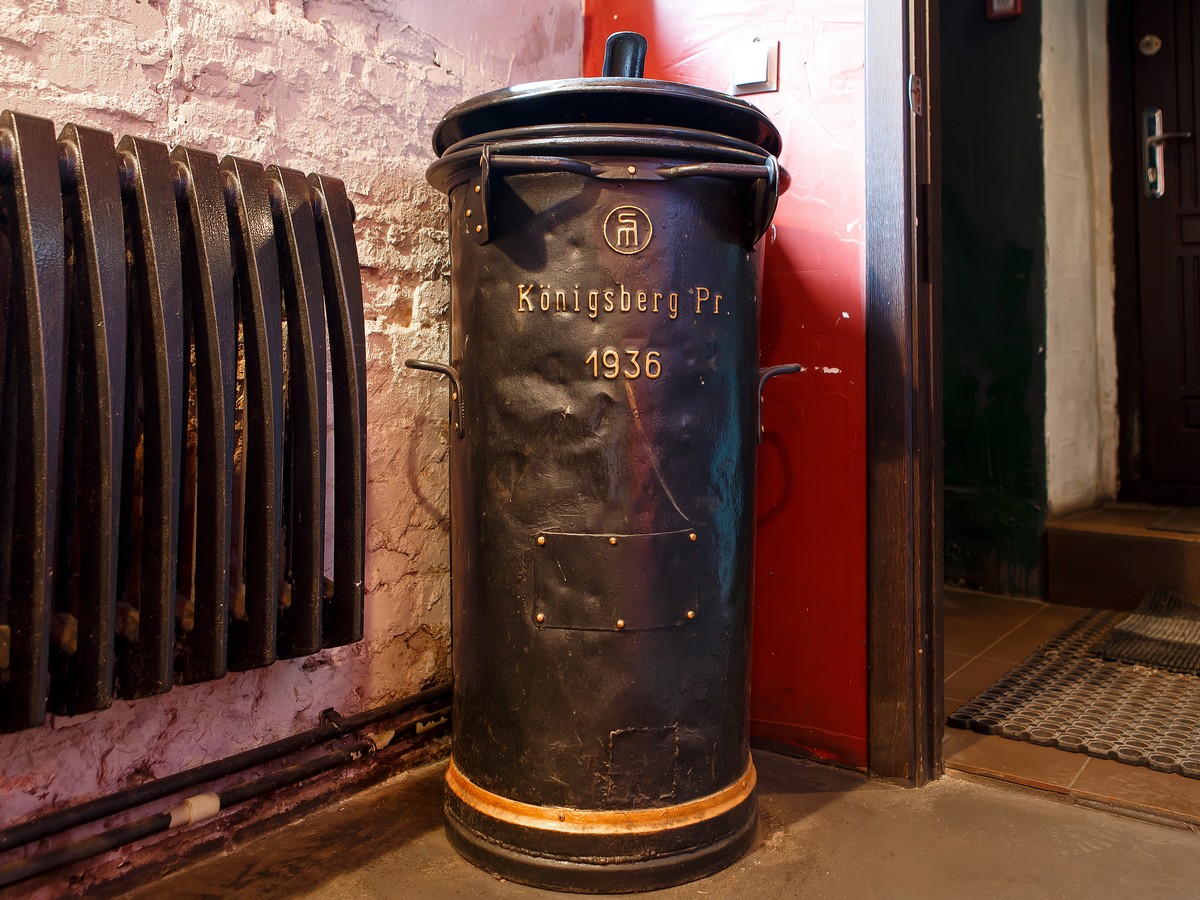 - У нас в заведении стоит абсолютно настоящая, не являющаяся репликой, восточно-прусская, кёнигсбергская мусорка, датированная 1936 годом. Нам ее подогнал один антиквар и черный копатель, чью фамилию мы не можем сообщить. Но зато можем с радостью сообщить о том, что ее покраской, ремонтом и шлифовкой занимался Паша Часовников, также известный как «Граф Шишкин». Поскольку мы тут все придерживаемся имперских английских взглядов, то выполнили ее в черно-золотой гамме, в которой изготовлена и наша вывеска и в которой выдержан наш бренд-бук. Мы сказали: «Паш, буковки золотые, элементы золотые, все остальное черным». И вот она у нас уже год стоит.