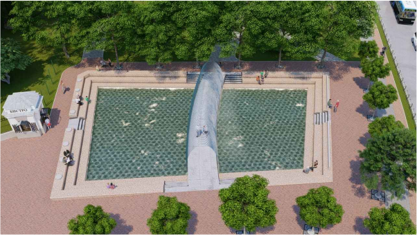 Следом советник губернатора показал «свежий проект». В нем бассейн фонтана немного уменьшается со стороны «Балтики», чтобы организовать дополнительный проход; а в центре появляется мост с тоннелем из воды. Края фонтана становятся многоуровневыми — как минимум, с двумя ступеньками из гранита, на которых можно сидеть. Причем верхнюю ступеньку авторы проекта задумали подогревать. «Отрезать» сквер от дороги концепция предлагает аллеей из взрослых деревьев. Таким образом, по задумке, место становится более камерным. В одной из будочек-касс авторы «разместили» кофейню.