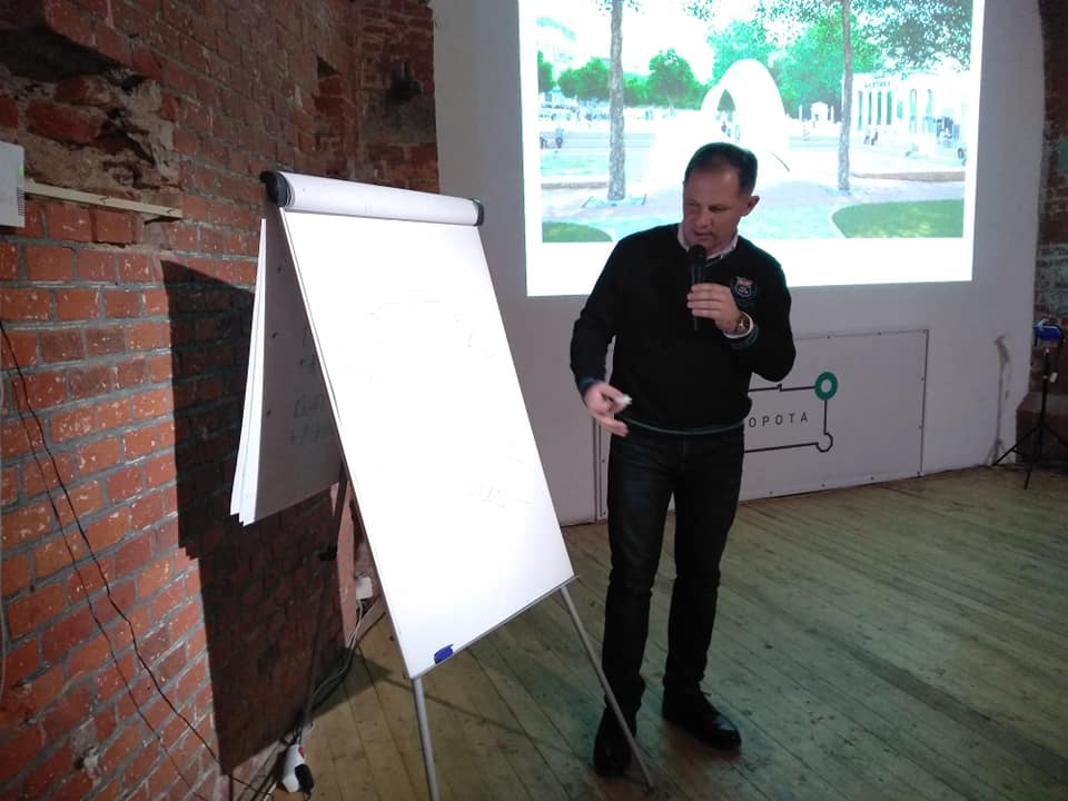Выступление Александра Попадина в результате не только внесло исторический дискурс и напомнило о таком понятии, как городские легенды, но и, кажется, внесло в повестку мероприятия конструктивный формат. Может, поэтому, после его презентации, все 40 присутствующих человек с готовностью остались, чтобы в течение 15 минут поработать в предложенном формате. Он заключался в том, что вместо привычных вопросов-ответов из зала, все разбились на четыре группы и за столами обсуждали определенный фокус проекта: озеленение, сам фонтан, активности на площадке у входа на стадион и общую концепцию.
