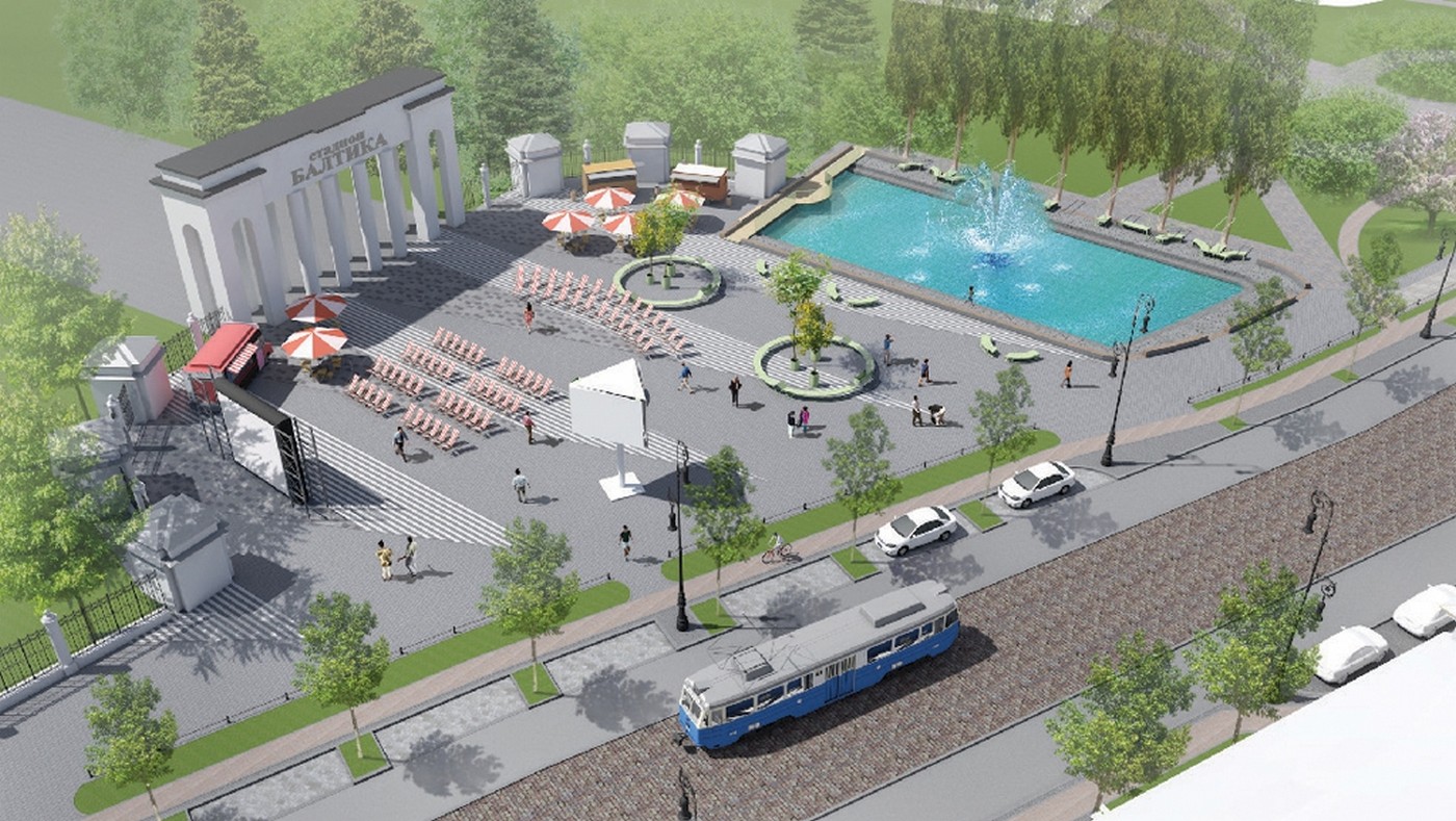 ее модераторы — дизайнер Андрей Дивеев и урбанист Яна Мерцалова — рассказали о двух идеях. В одном случае: сделать бассейн интерактивным, а не созерцательным, положив террасную доску. В другом случае не «перебивать» эффект от доминанты этого места — колоннадного входа на «Балтику», сделать ведущую к нему аллею из деревьев.