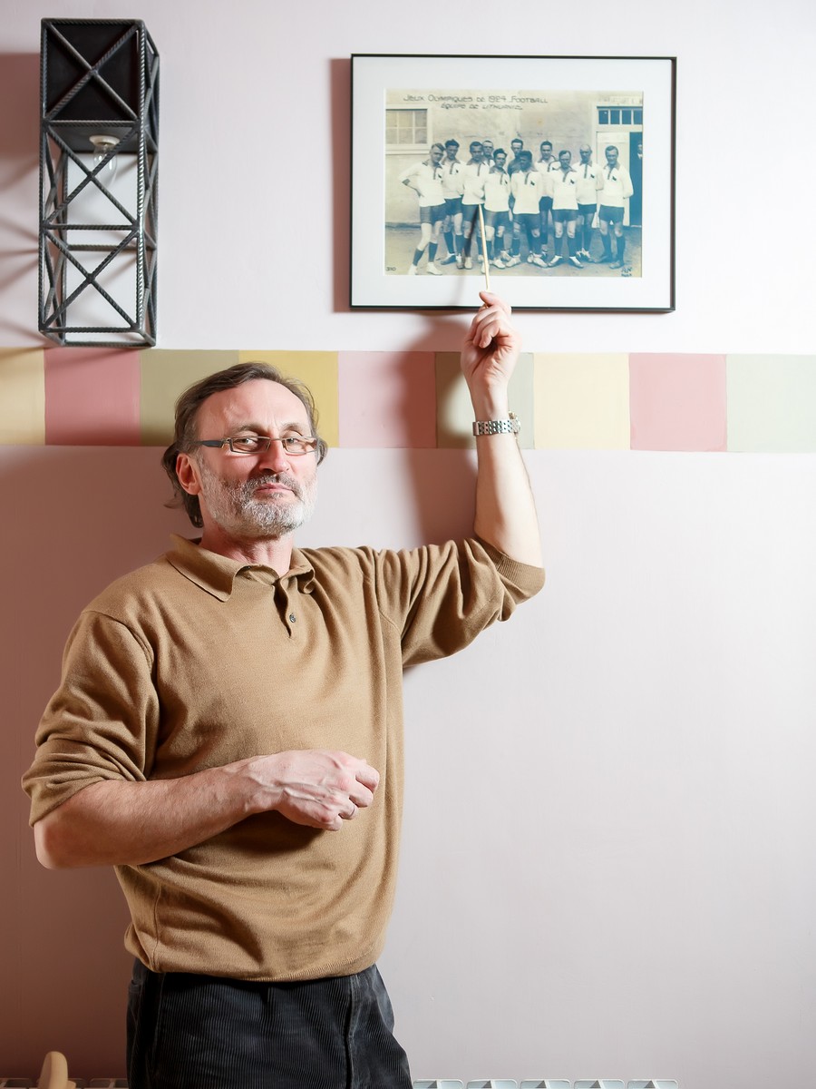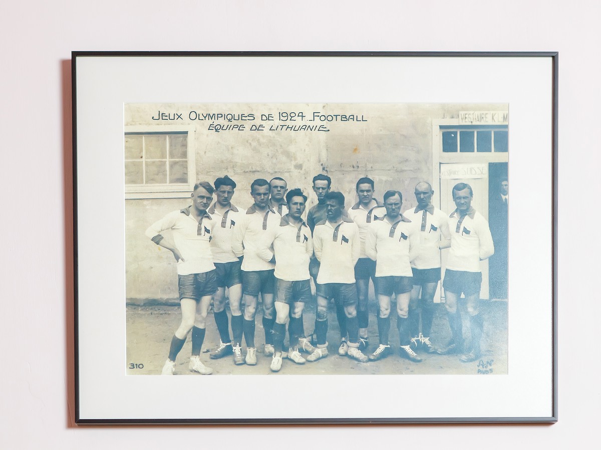 - На одной из стен у нас две фотографии 1924 года – сборной Литвы и сборной Уругвая. На фото уругвайской сборной моего деда нет, это команда-чемпион Олимпийских игр, но в этих же играх также участвовал и мой дед как игрок сборной Литвы. Их фотография рядом. Фактически это был и первый чемпионат мира по футболу. Литовская сборная проиграла тогда в Париже финалисту – сборной Швейцарии, со счетом 0:9.