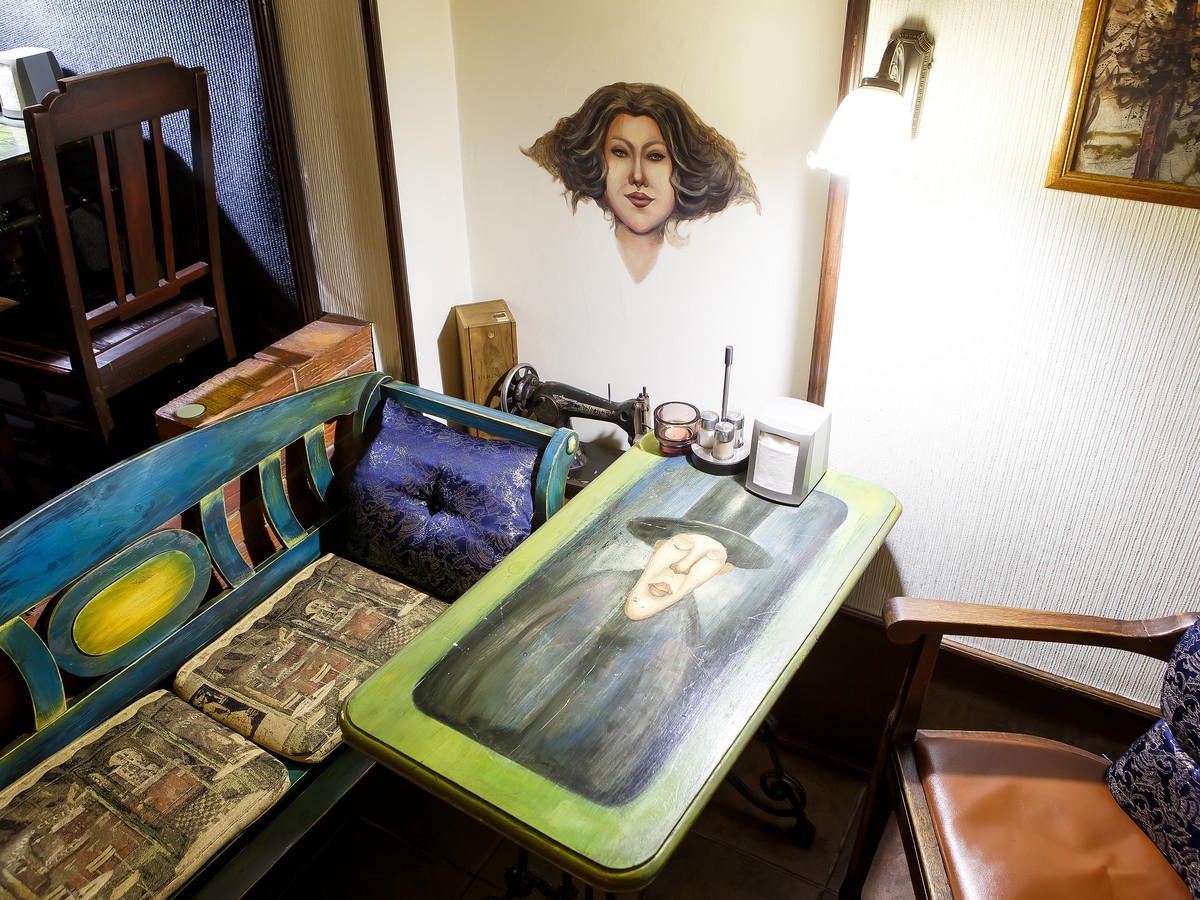 - В 1997 году была приглашена польский дизайнер и художник по имени Агнешка Едковская, если я правильно помню ее имя. Творческий псевдоним у нее был Bulldozer. Ее работы мы впервые увидели в Сопоте и в Гданьске, нам тогда очень понравилось, и мы посредством расспросов узнали ее координаты, с ней связались и пригласили сделать дизайн в «12 стульев». Она расписывала стены, витражи сама делала вручную, ну и, соответственно, расписала несколько столов и делала фрески на стенах. Это ее работы, авторские, сделанные вручную, им уже по двадцать лет.