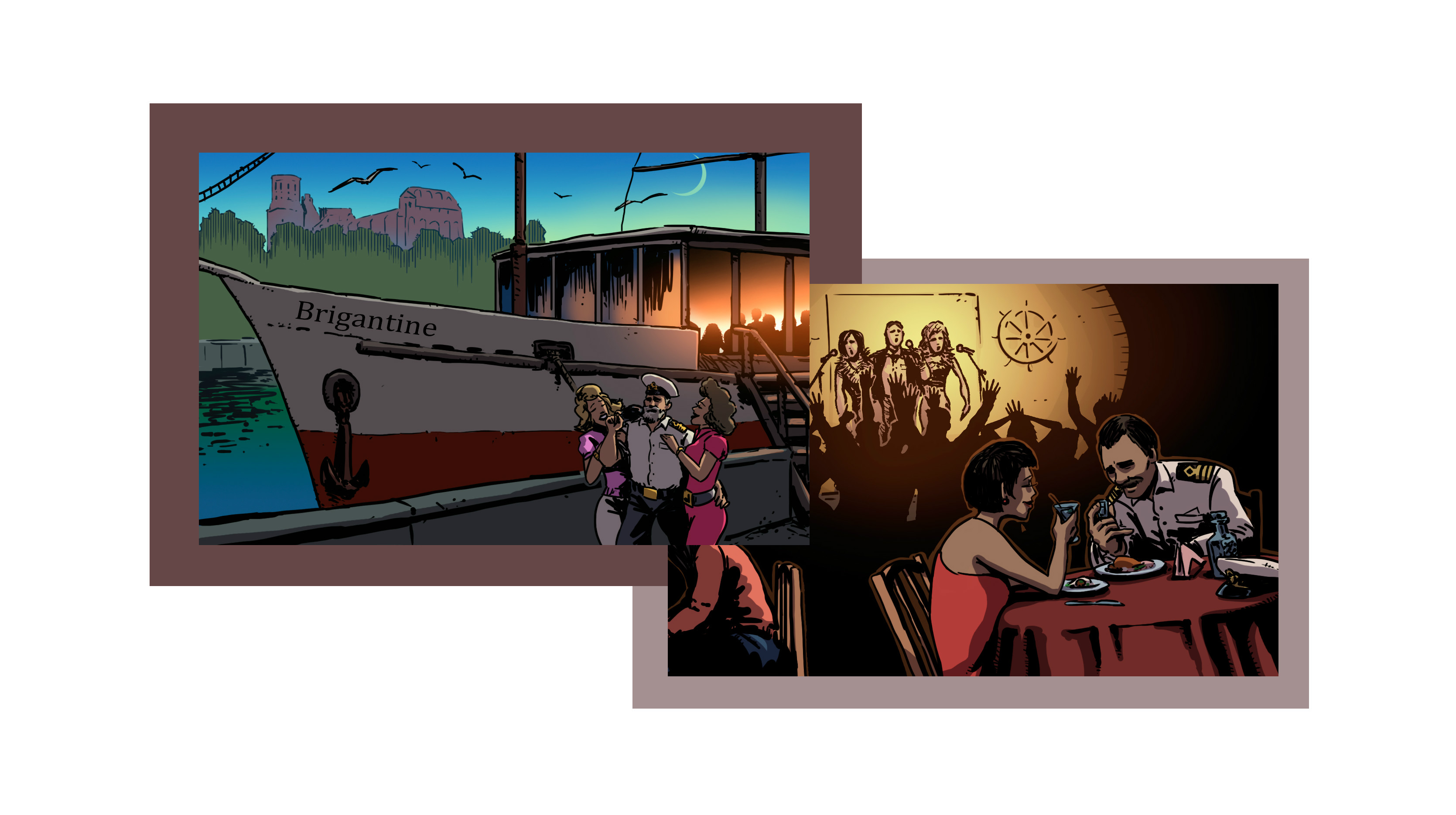 При всем уважении к космонавтам, морская линия в советском Калининграде более обширна. Самым романтическим заведением была «Бригантина» – списанный парусник, переделанный в плавучее кафе. Швартовался он в нескольких местах вокруг острова Канта, искал сочетание камерности и доступности. Шаткие клиенты вечерами спускали с его палубы шатких же дев, помогая на сходнях не упасть в воду… потом кто-то все-таки упал, запретили продавать алкоголь, а без алкоголя-то какая морская душа вытерпит? Вот и сгорел он в один день. Камбуз, кок и разблюдовка* переехали в «Атлантику».