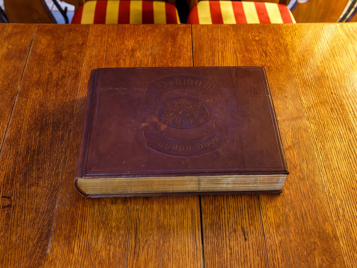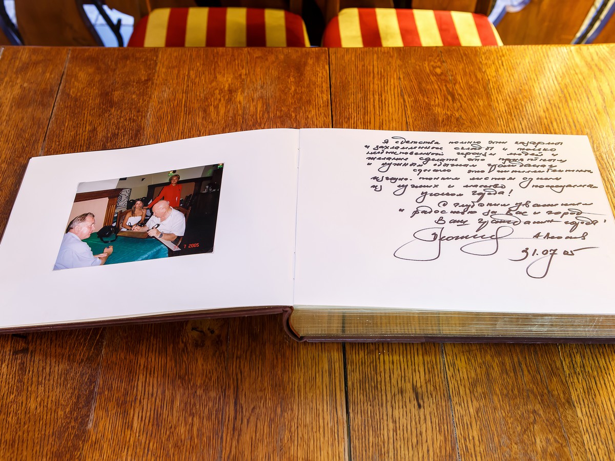 Книга отзывов существует для особых случаев, мы ее нечасто выносим. Но надо сказать, что мы частенько о ней, к сожалению, забываем: у нас постоянно бывают знаменитые посетители, которые имеют большой вес для нашей страны. И ученый Капица был, и актеры разные знаменитые, Спиваков еще был.