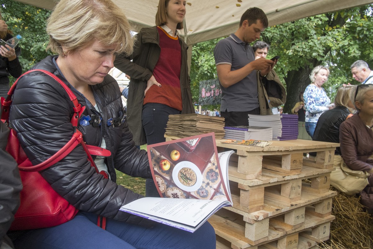 Любой кулинарный рассказ приобретает интерес только тогда, когда ты становишься его частью. Эта презентация как раз и стала возможностью попробовать историю на вкус. Никаких крытых помещений, долгих лекций и рекламных речей. Все было настолько просто, что походило на большую домашнюю посиделку «за большим столом». Причем для полного погружения в прусскую атмосферу всем участникам предлагали попробовать флек и клопсы по старинному рецепту. Для самых смелых – еду заворачивали в книжные страницы, для слабонервных – раскладывали по тарелкам. Все сидели на стогах сена, держали в одной руке стаканчик с едой, в другой - свежеиспеченную булочку – и слушали рассказы о том, что и как любили есть сотни лет назад.