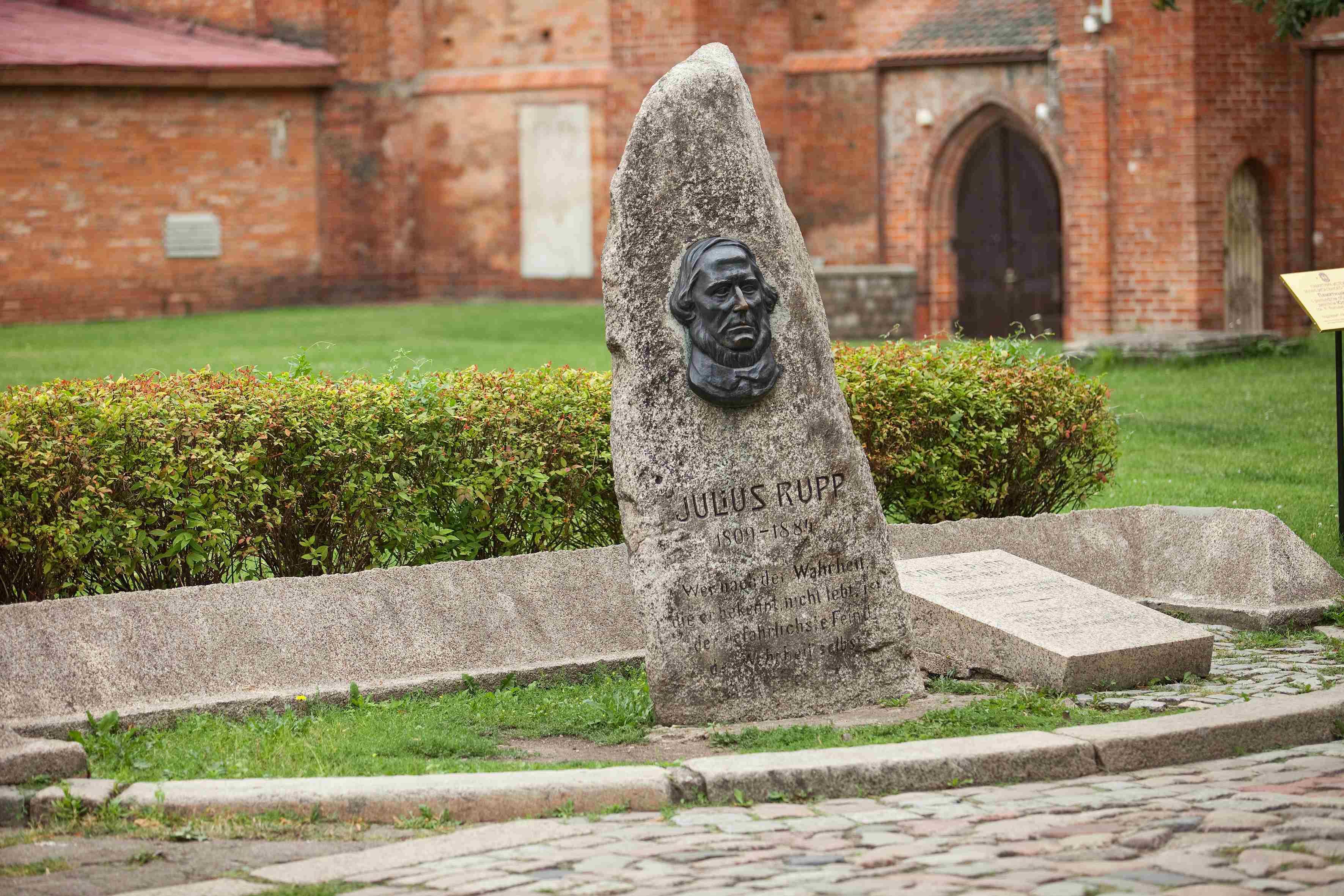 В восточной части острова, у дороги от Медового моста к Собору стоит большой природный камень с бронзовым портретом – памятник Юлиусу Руппу (1809-1884). Вопреки расхожему мнению, это не надгробный памятник. Юлиус Рупп был похоронен на кладбище возле Королевских ворот.