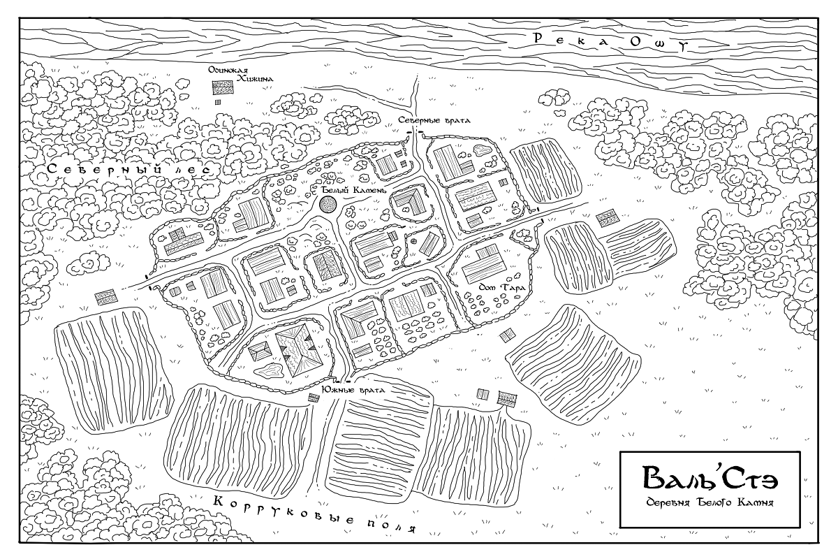 Карта деревни Валь'Стэ, разработанная и нарисованная Денисом Ганиманом