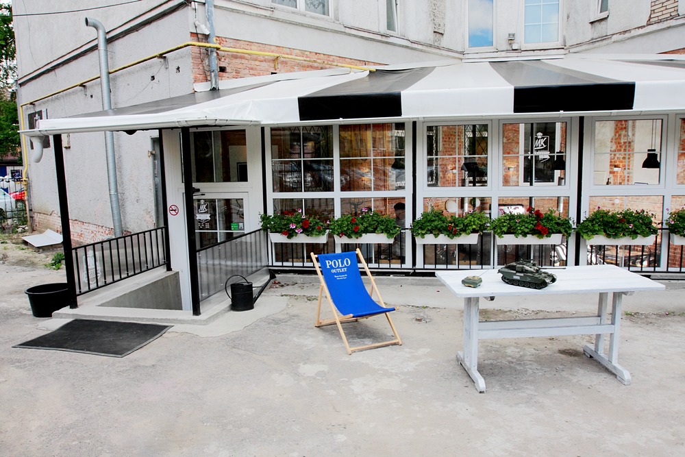 Опасаюсь, что калининградская погода не даст ребятам сделать что-то прикольное с территорией снаружи MK Pizza. Конечно, в хорошую погоду выглядит всё уютненько и по-домашнему при том, что место не на первой линии. Выглядит клёво. Но в принципе на улице столики будут хорошо смотреться. А так само место чем-то напомнило заведение на «Красном Октябре». Если бы здесь было ещё несколько баров как часть комплекса, сходство было бы ещё большим. Но, кстати, когда зашёл в MK Pizza в первый раз, поначалу показалось, что где ступеньки в центре зала – там спуск и внизу есть ещё один зал. Но увы.